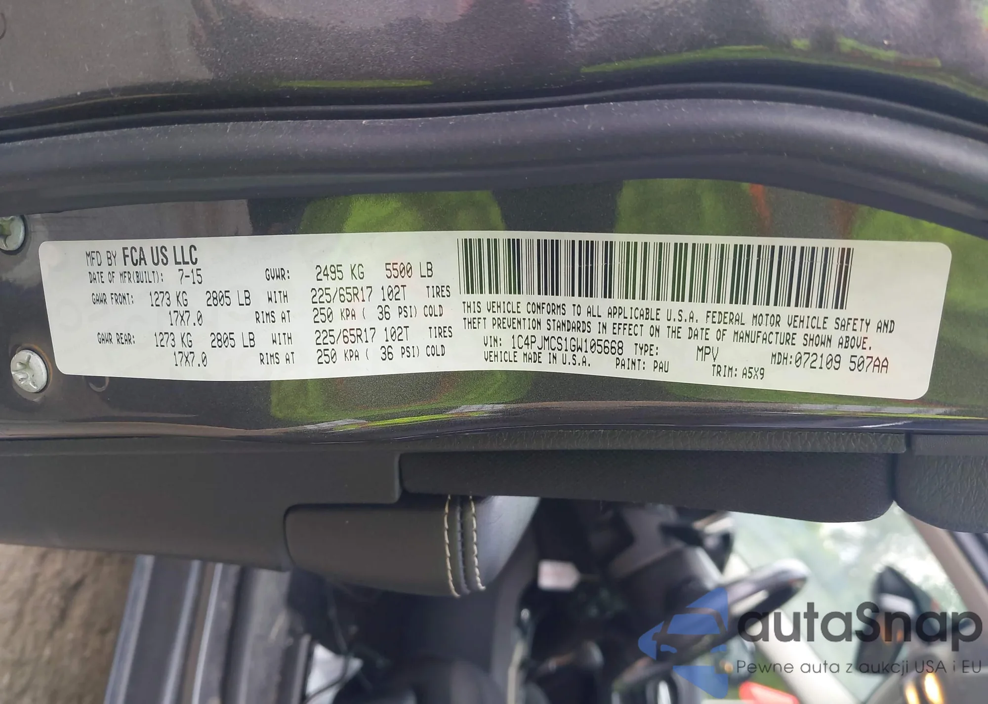 LOT: 42344416 VIN: WBXJG7C07M5T08833