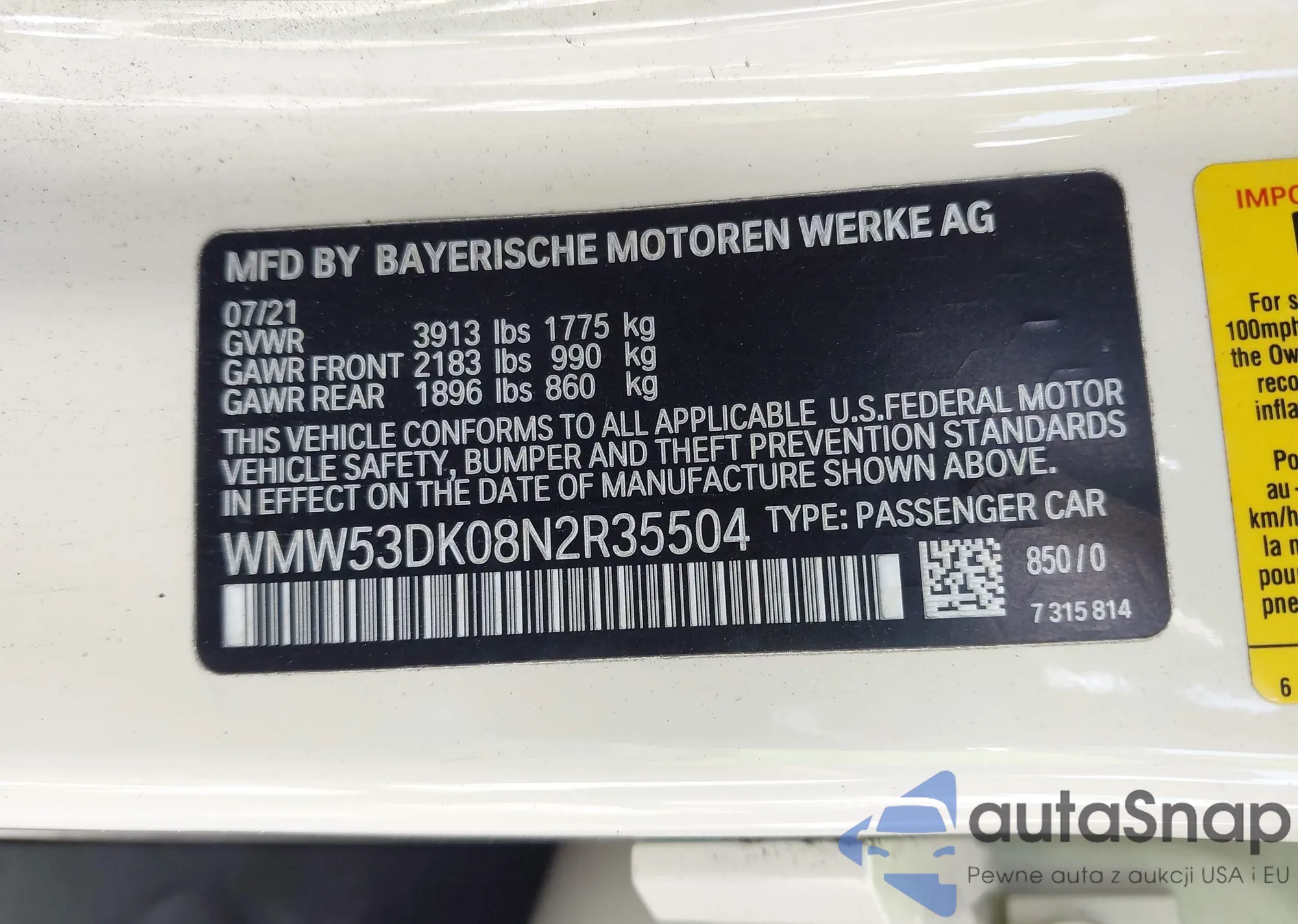 • VIN WMW53DK08N2R35504