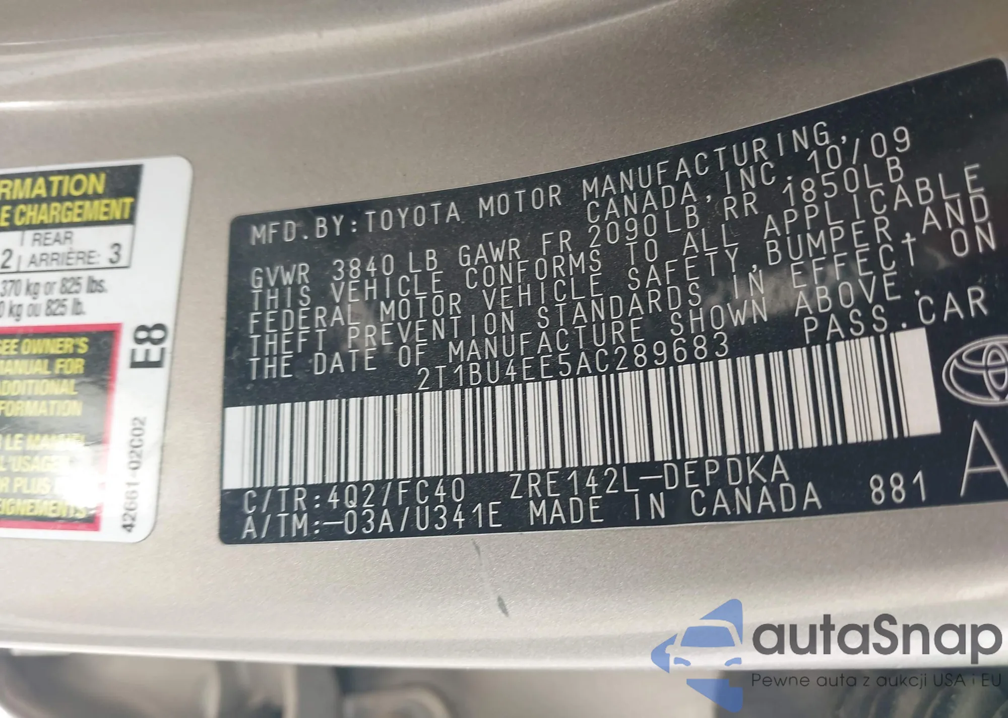 • VIN 2T1BU4EE5AC289683