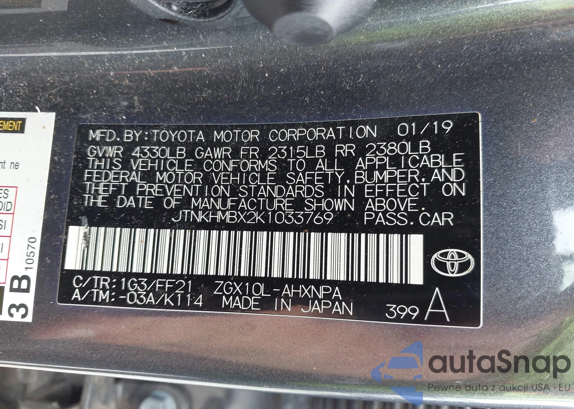 • VIN 4T1BD1EB7JU061378