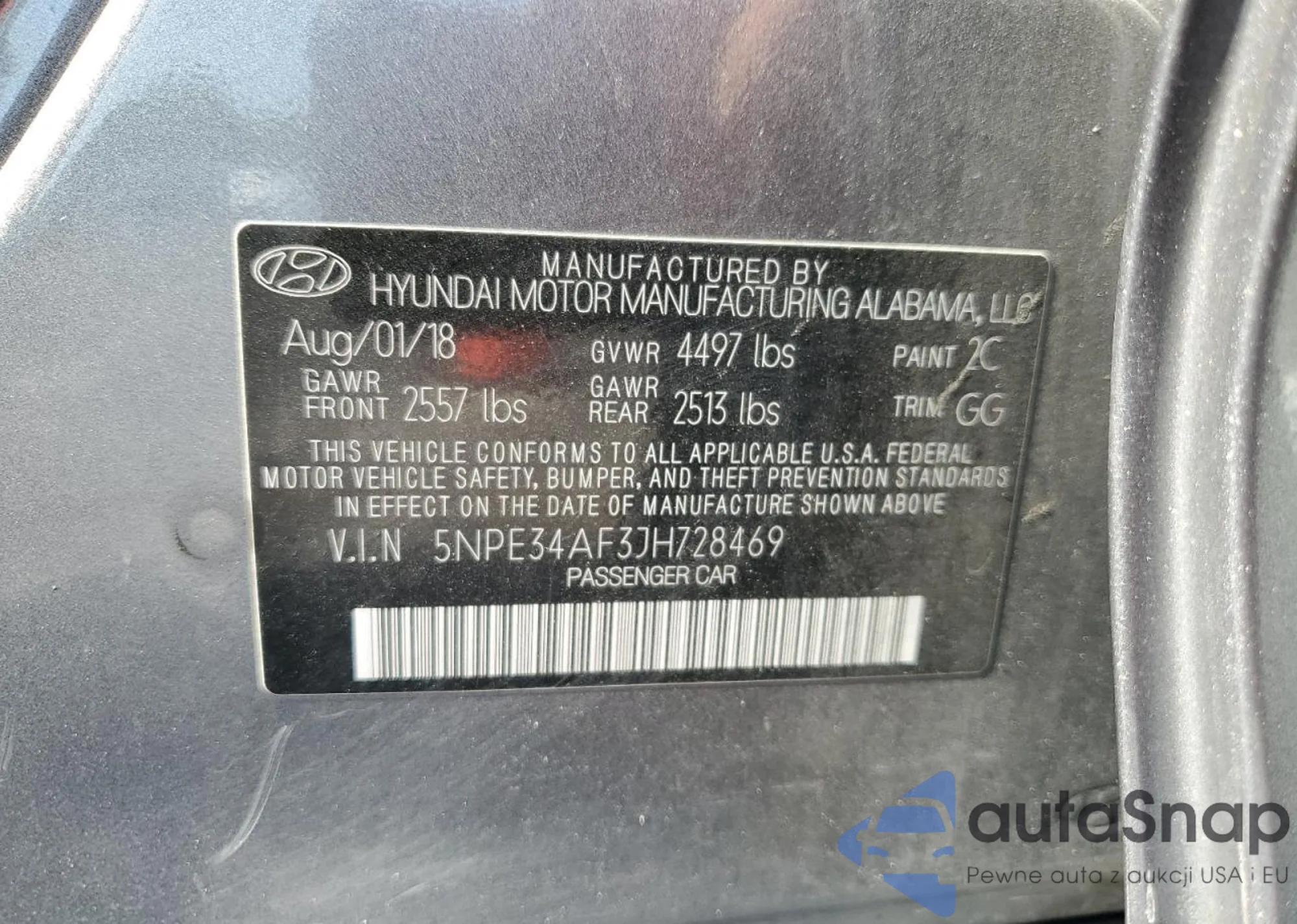 LOT: 58392155 VIN: 5NPE34AF3JH728469