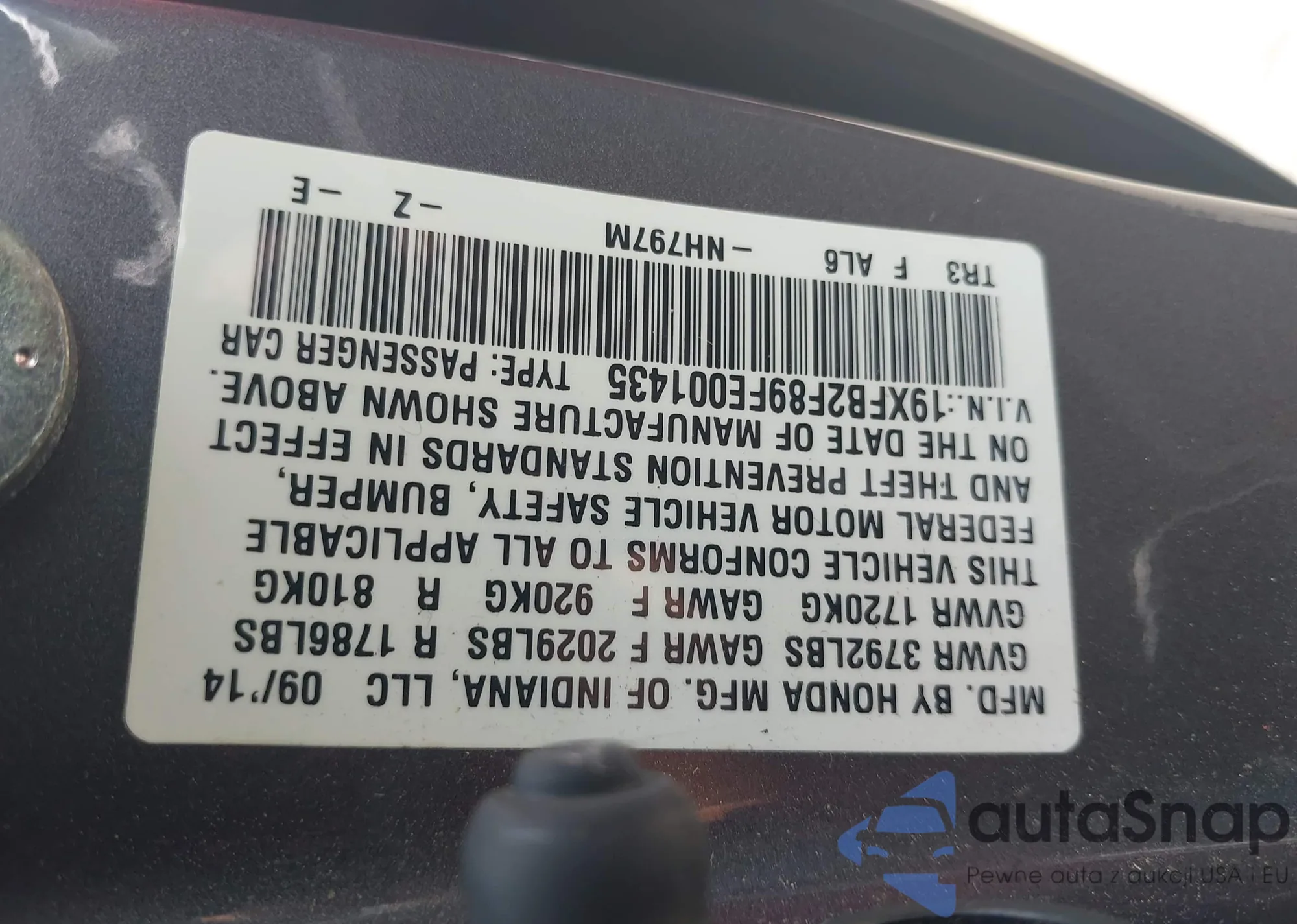 LOT: 42683167 VIN: 1HGCP2F34BA025763