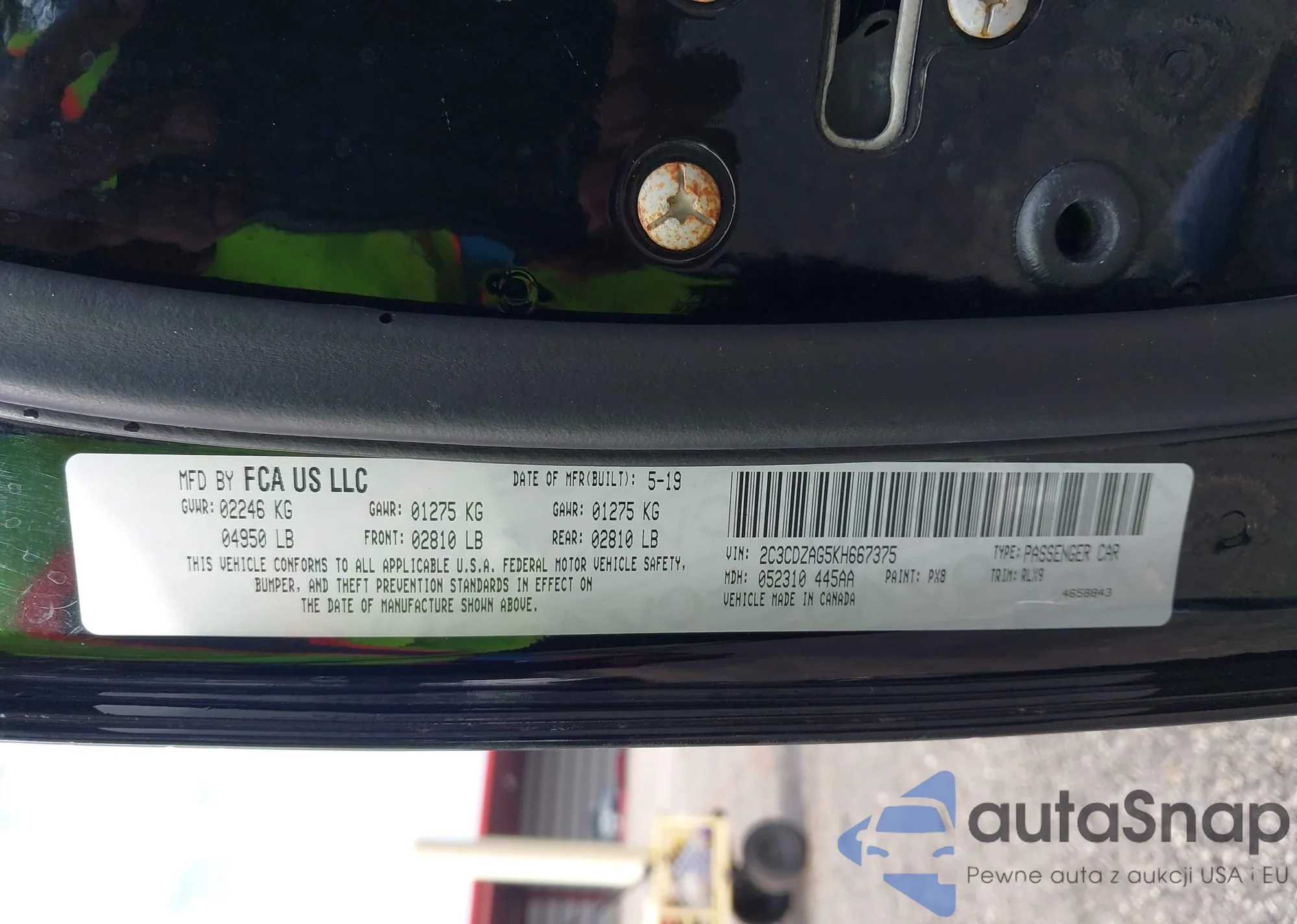 • VIN 2C3CDZAG5KH667375