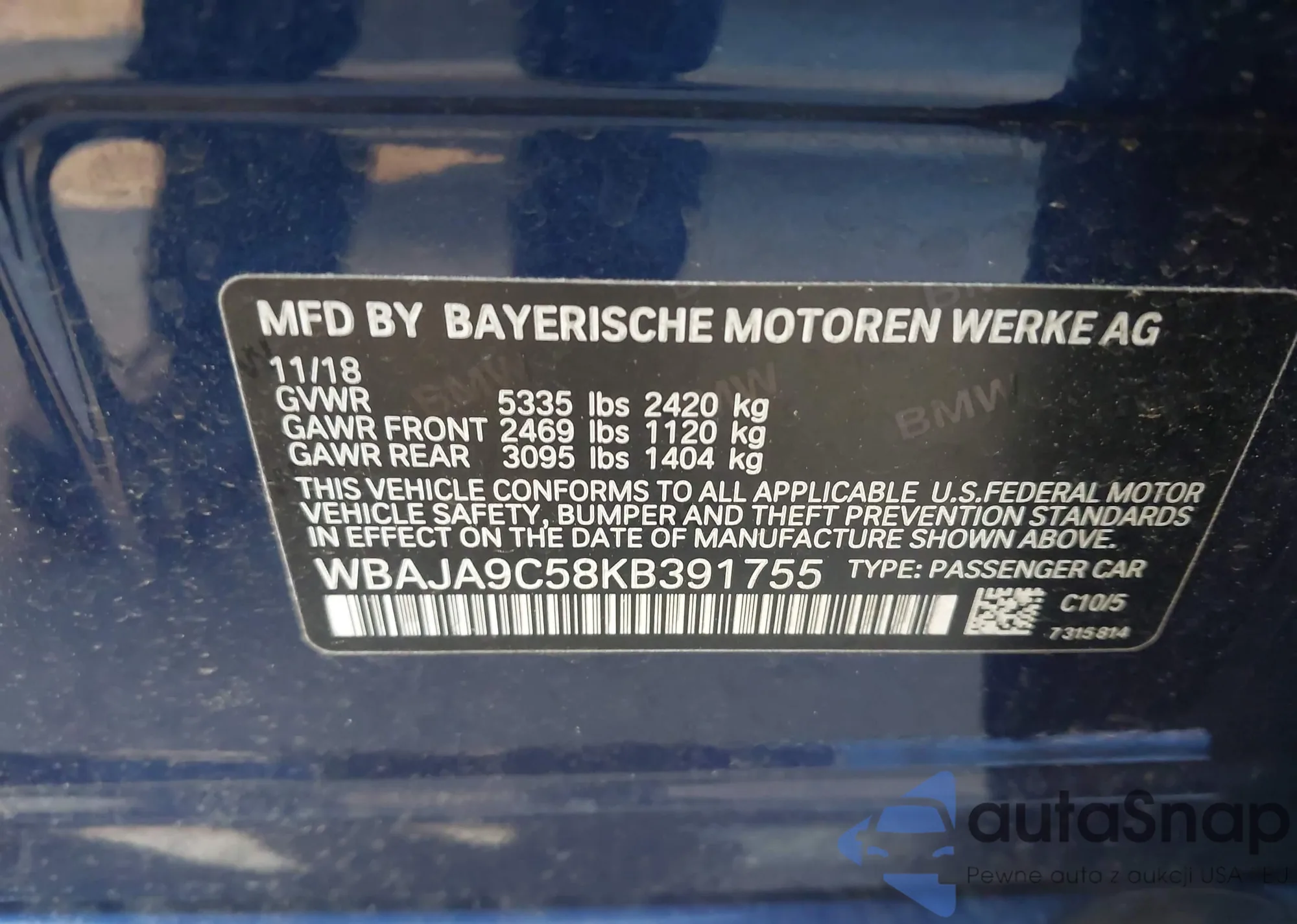 • VIN WBAJA9C58KB391755