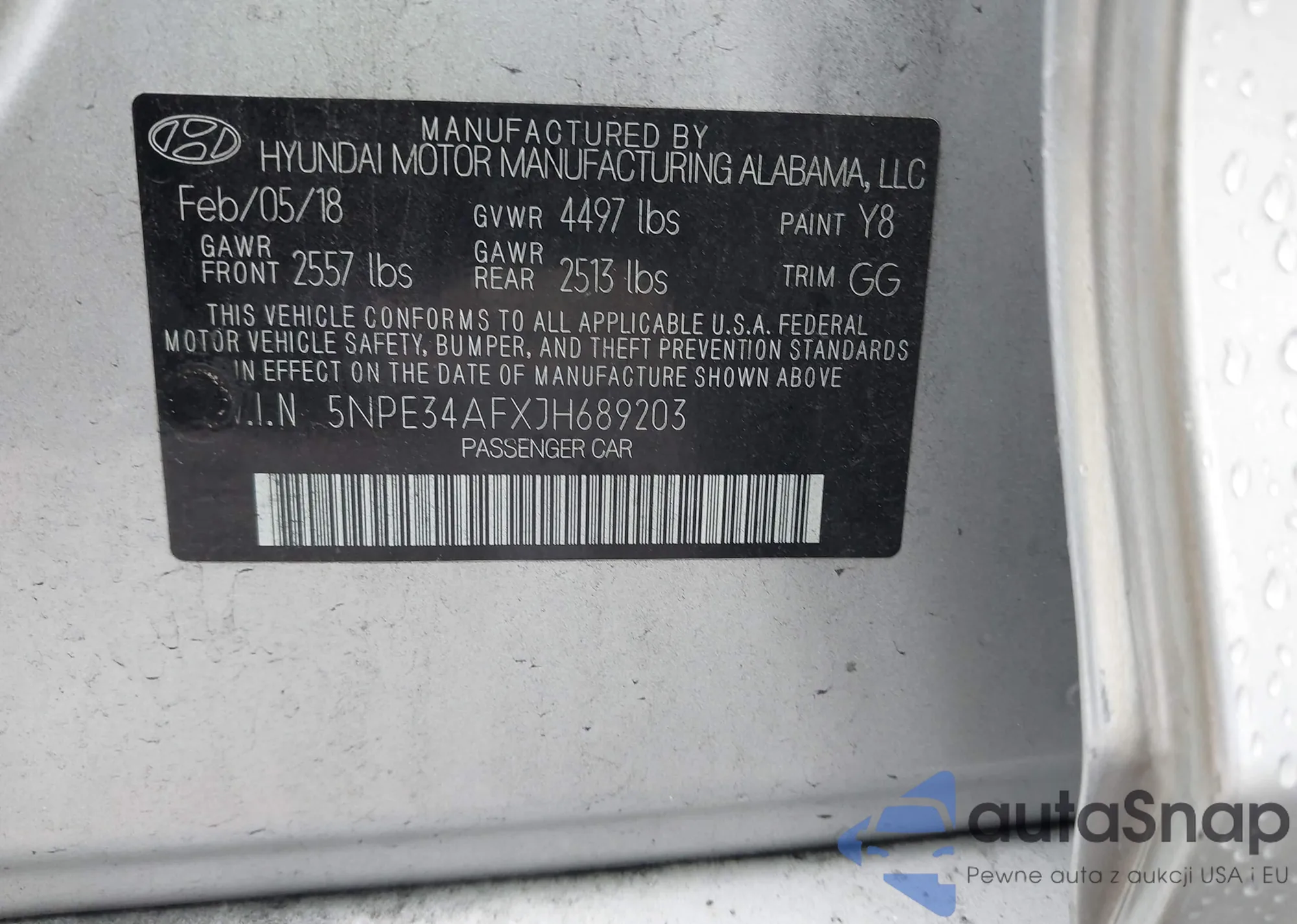 • VIN 5NPE34AFXJH689203
