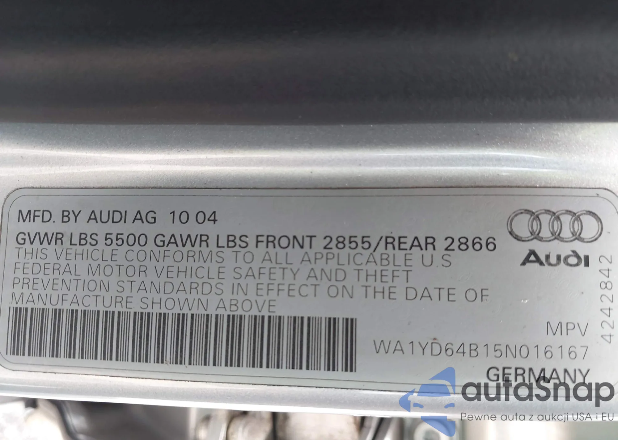 LOT: 42760598 VIN: 1J4FA69S05P339624
