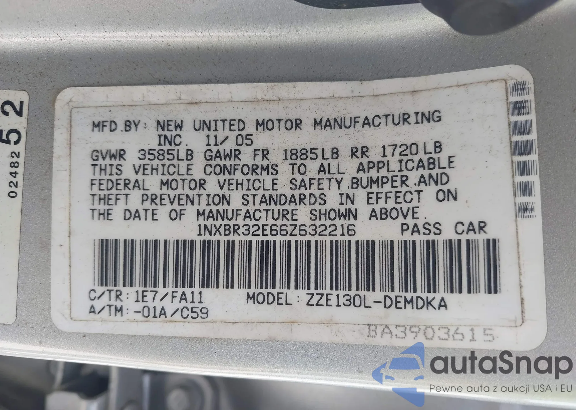 • VIN 1NXBR32E66Z632216