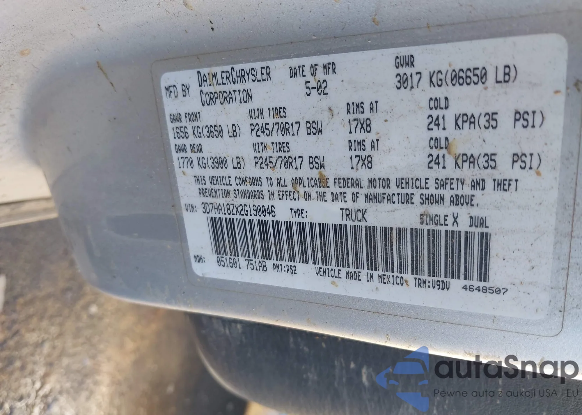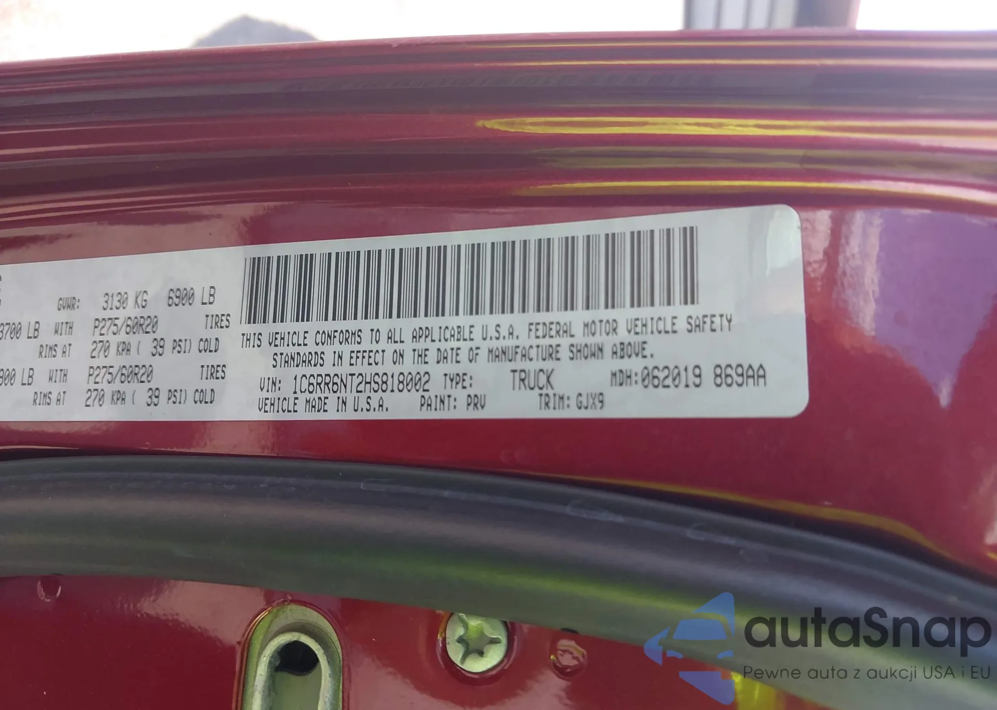 • VIN 1C6RR6NT2HS818002