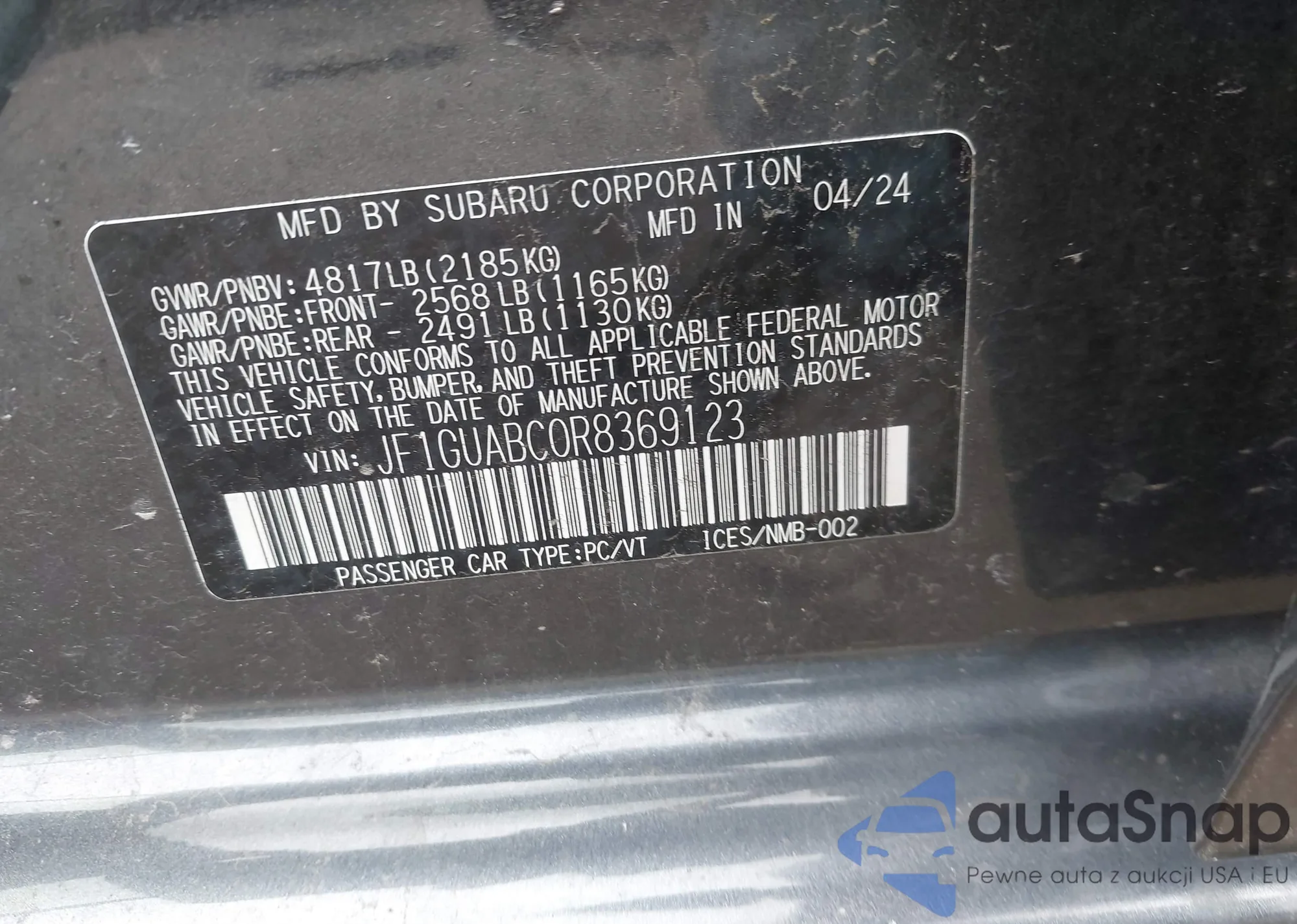 LOT: 42633138 VIN: JF1GUABC0R8369123