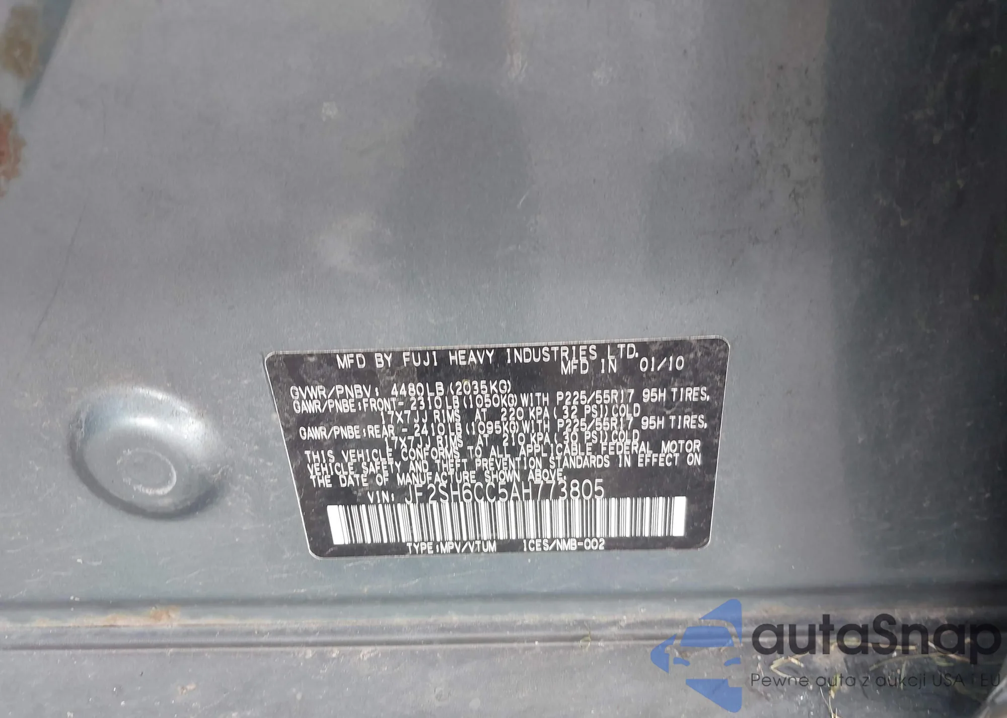 • VIN JF2SH6CC5AH773805