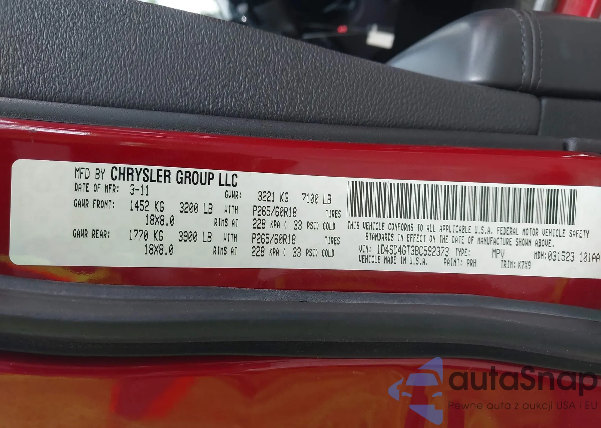 2011 Dodge Durango Crew из США, поврежденный, VIN 1D4SD4GT3BC592373