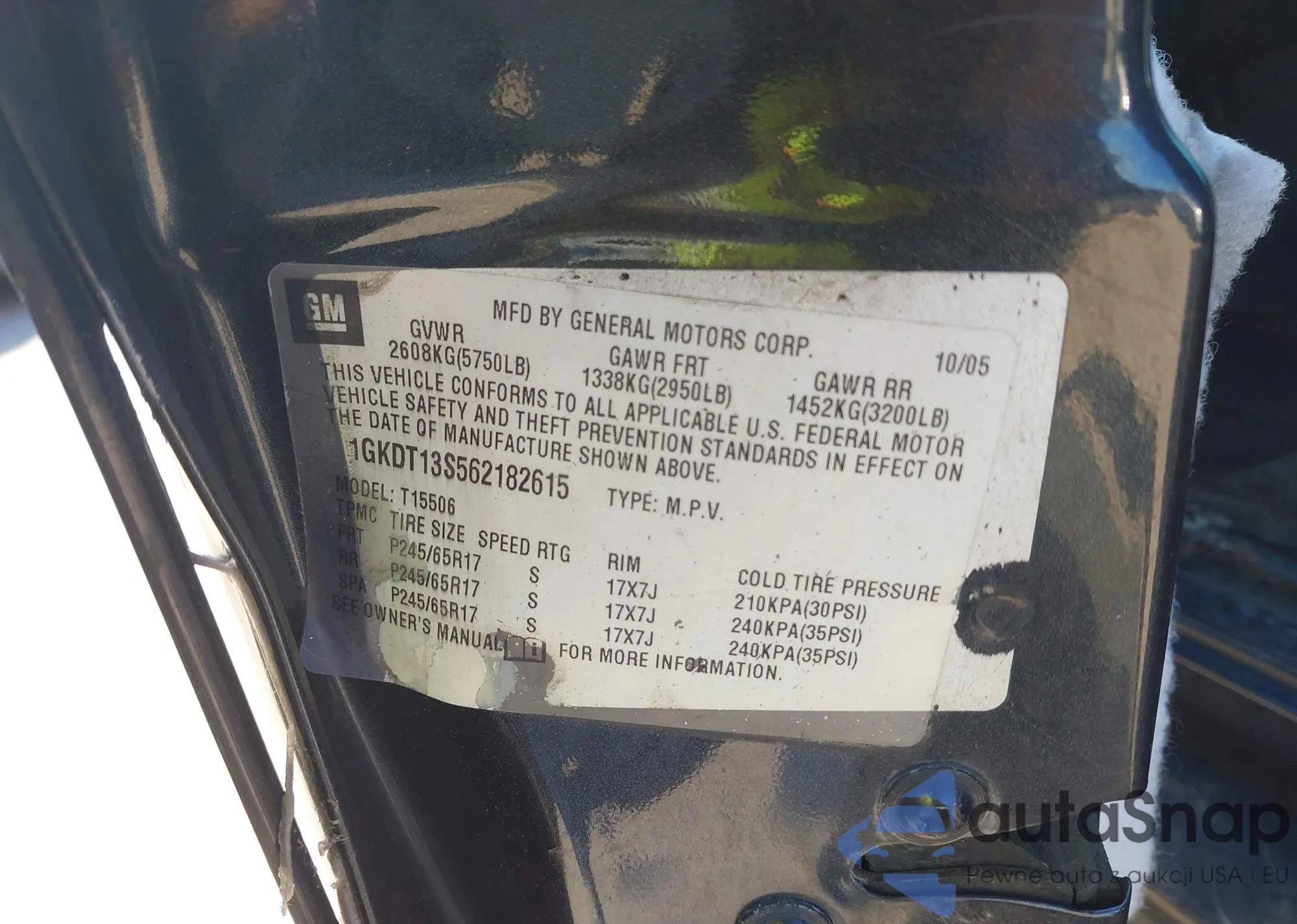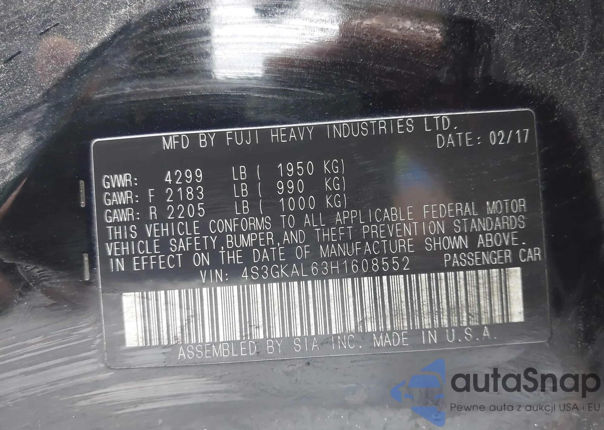 • VIN 4S3GKAL63H1608552