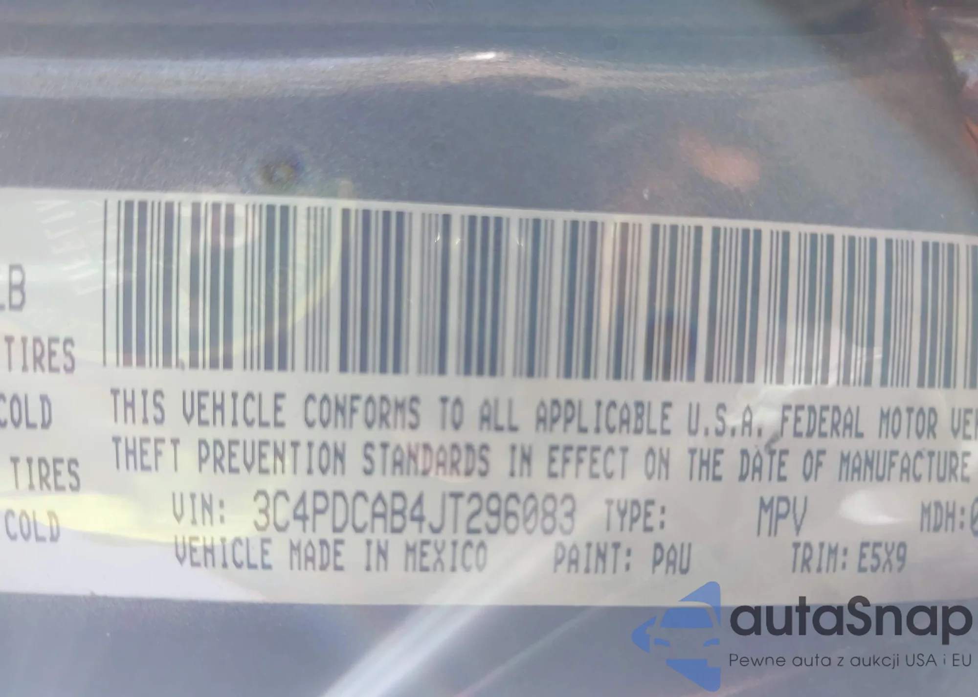 LOT: 42906876 VIN: 3C4PDCAB4JT296083