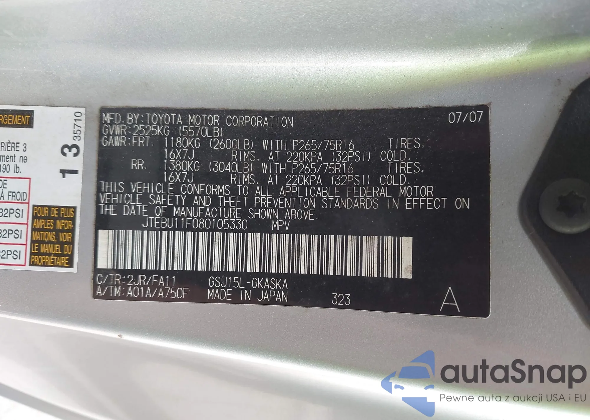 • VIN 1J8FT57W87D241714