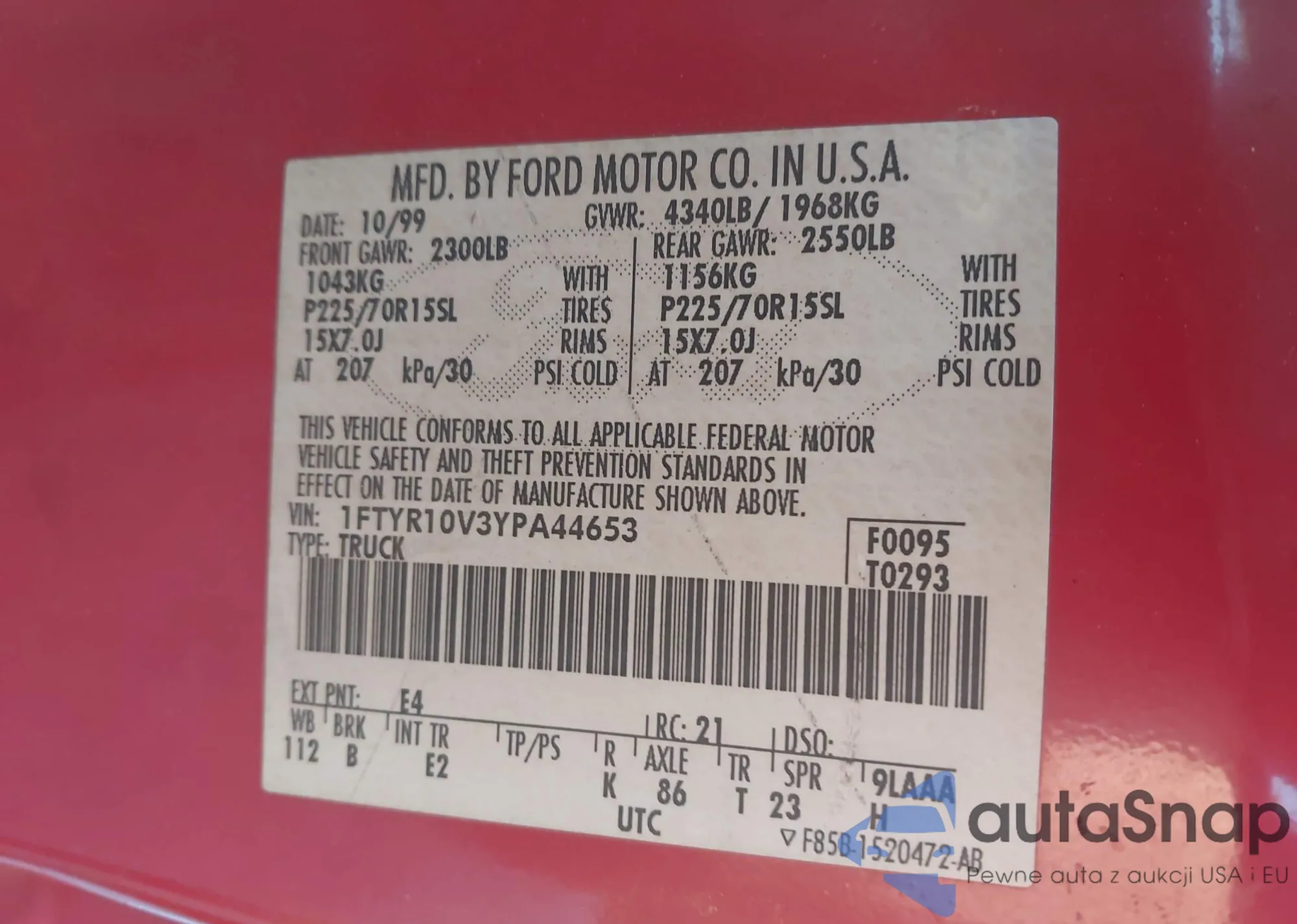 • VIN 1FTYR10V3YPA44653