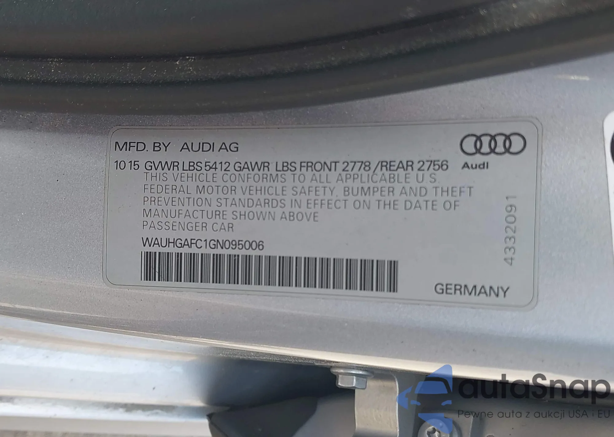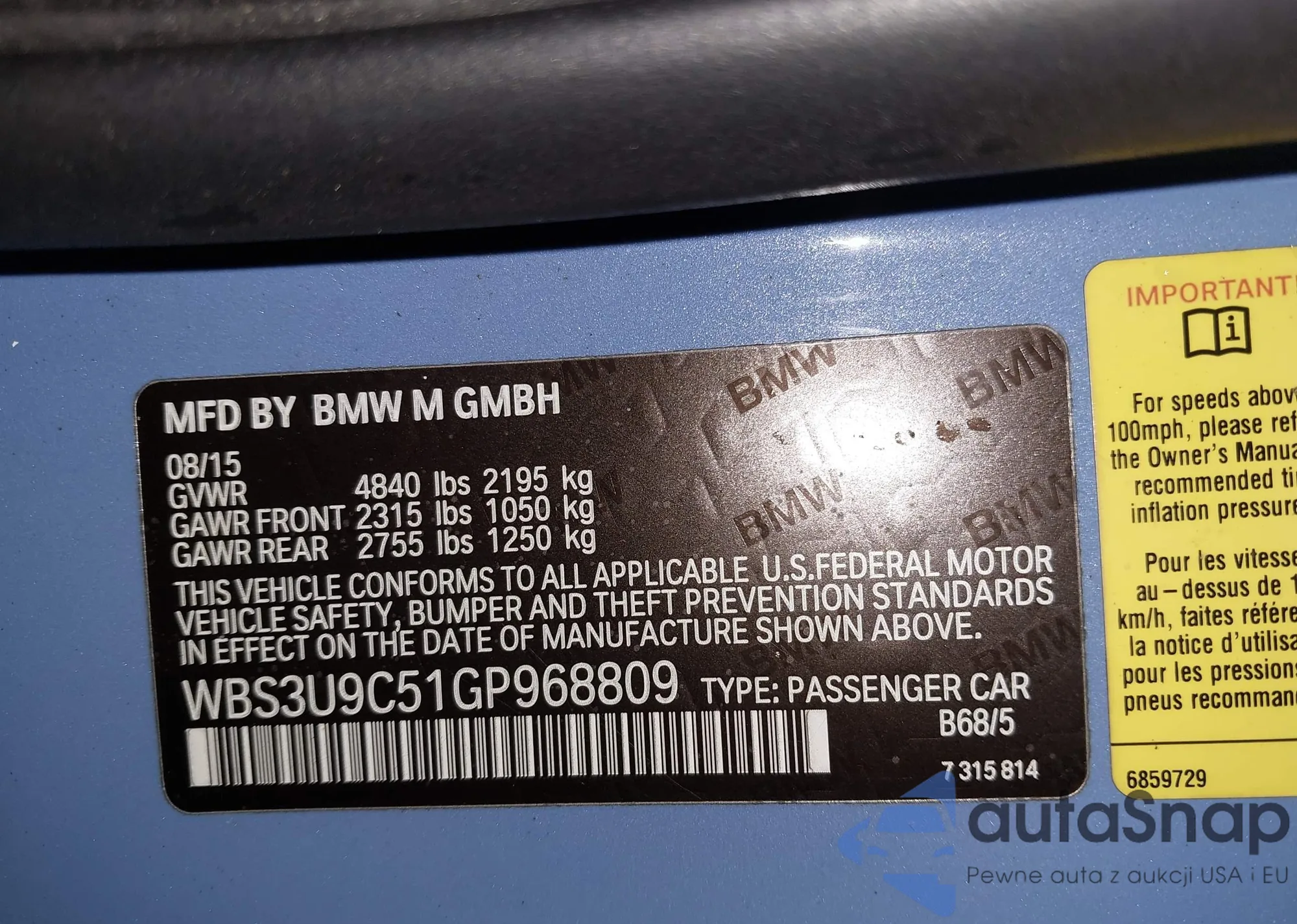 LOT: 42197553 VIN: WBS3U9C51GP968809