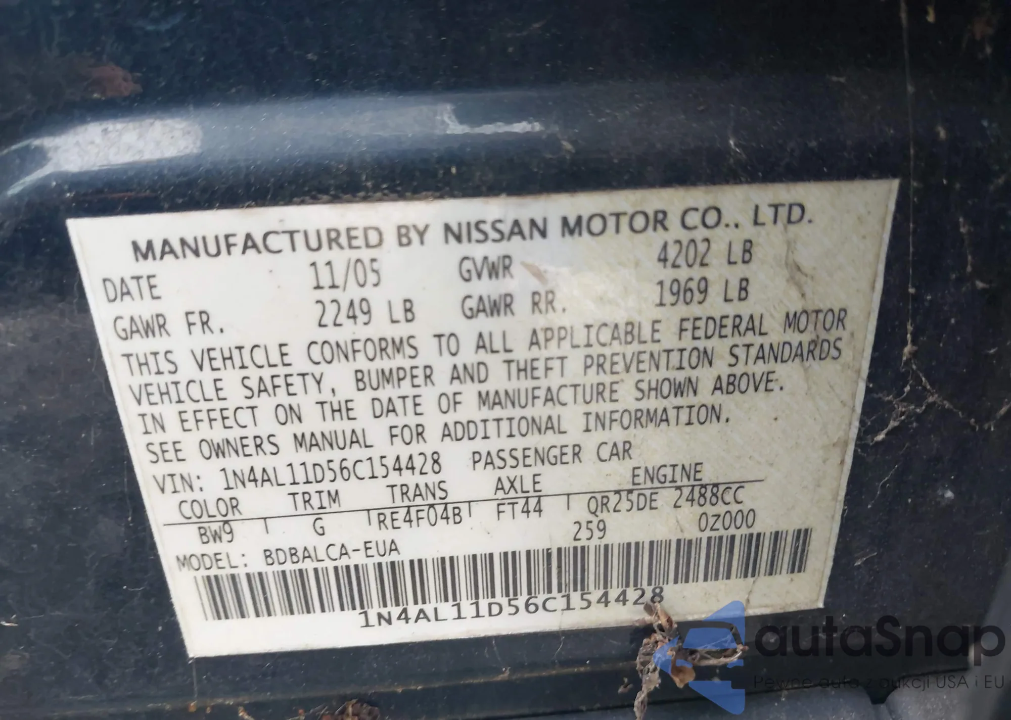 LOT: 42449701 VIN: 1N4AL11D56C154428