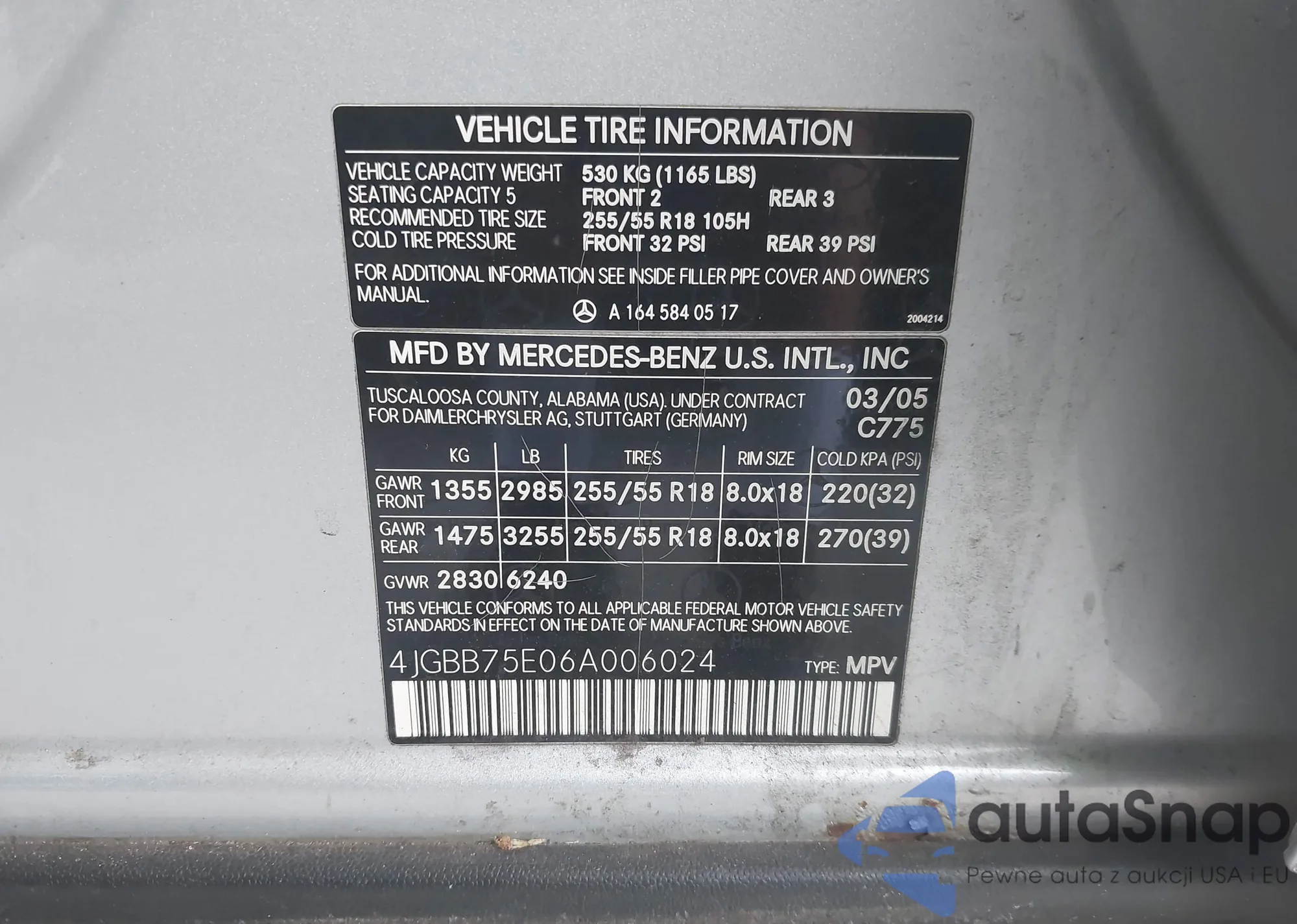 LOT: 42477075 VIN: 4JGBB75E06A006024
