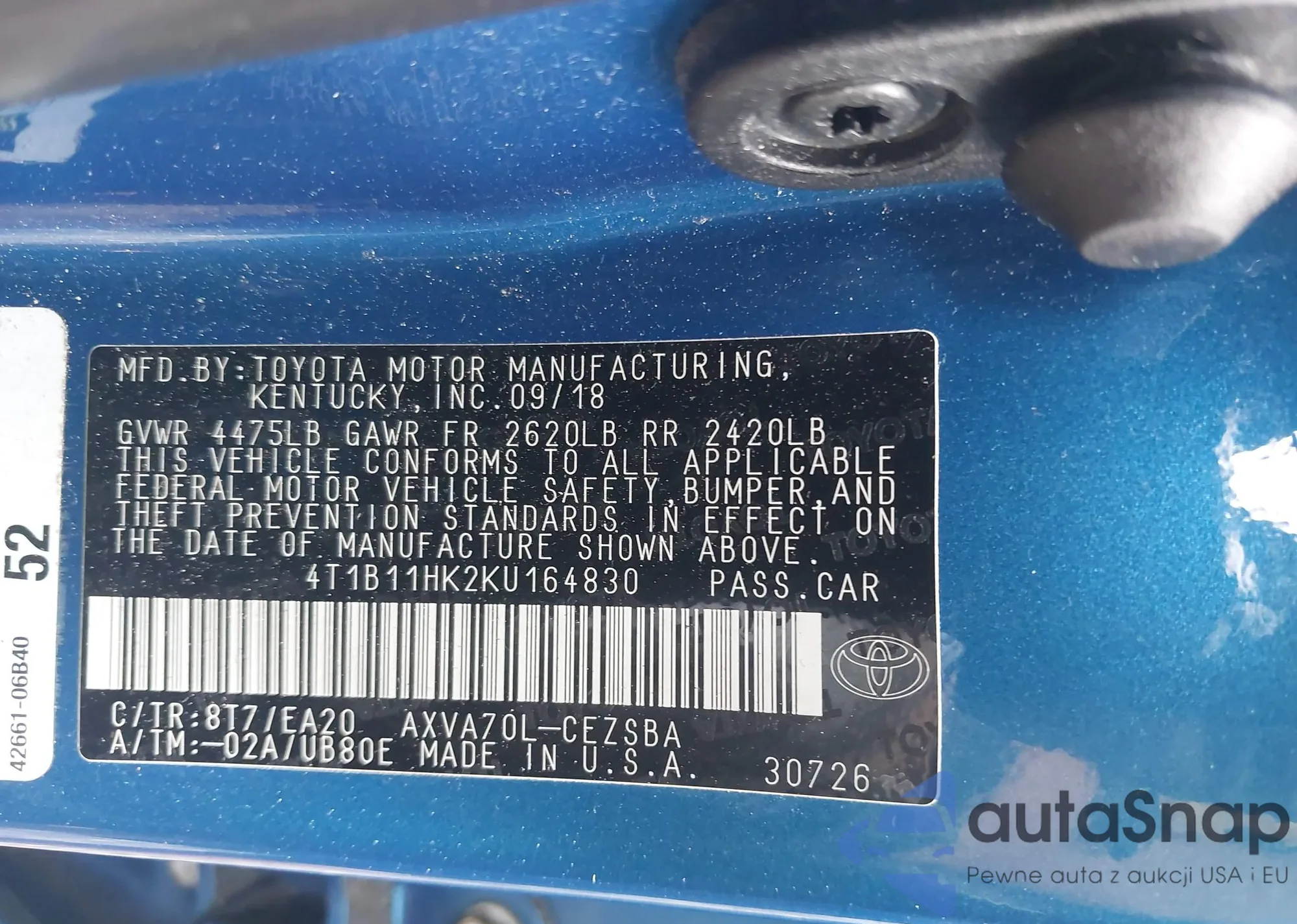 • VIN 4T1B11HK2KU164830
