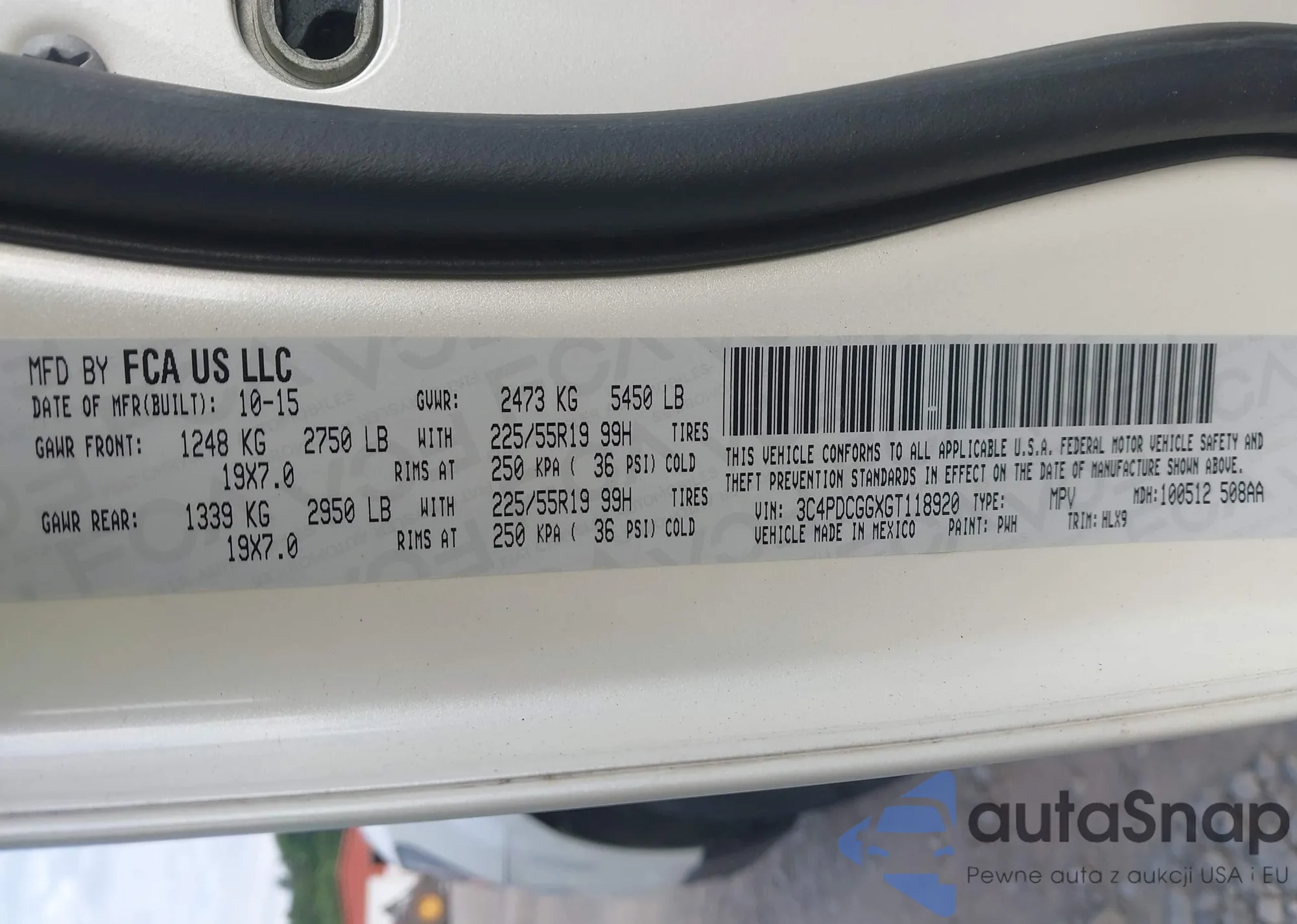 LOT: 42764449 VIN: 3C4PDCGGXGT118920