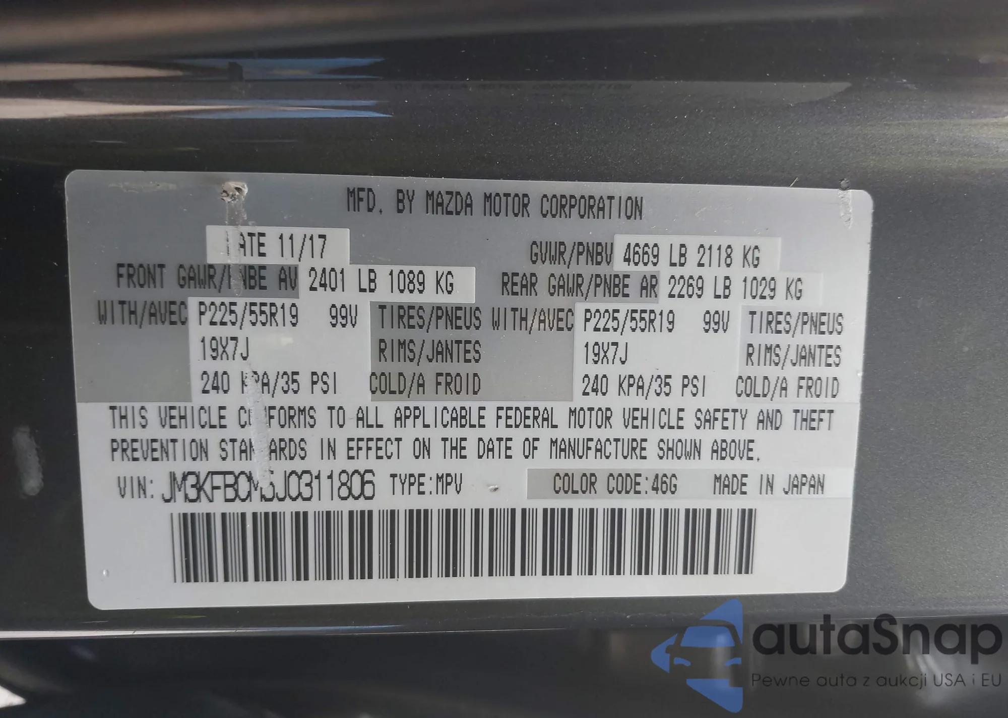 LOT: 42765445 VIN: JM3KFBCM5J0311806