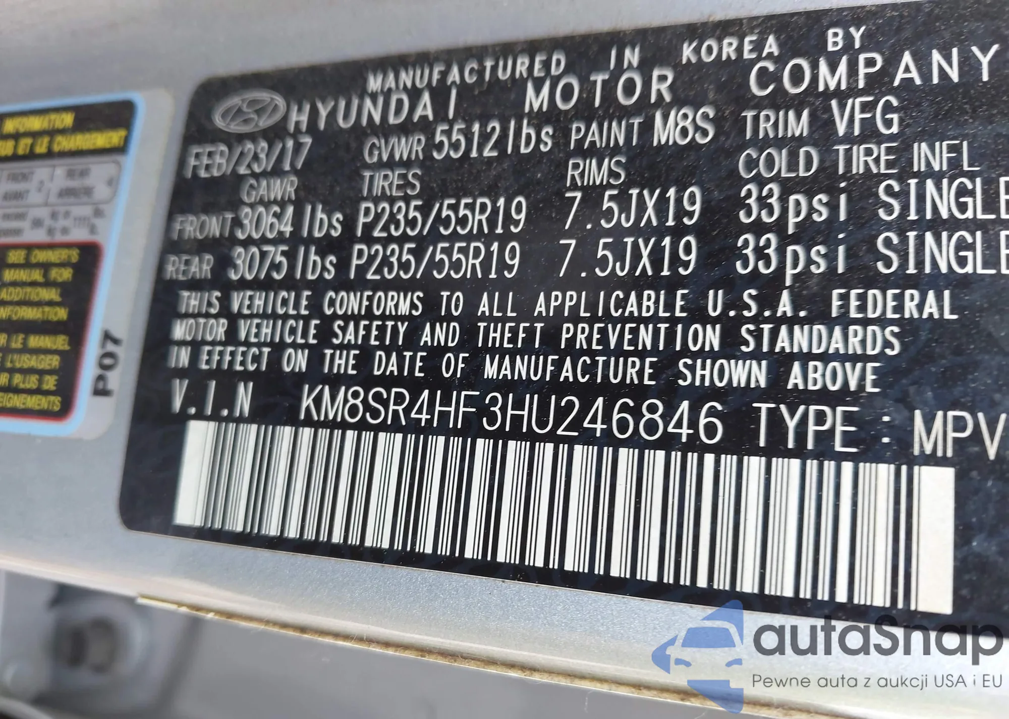 • VIN KM8SR4HF3HU246846