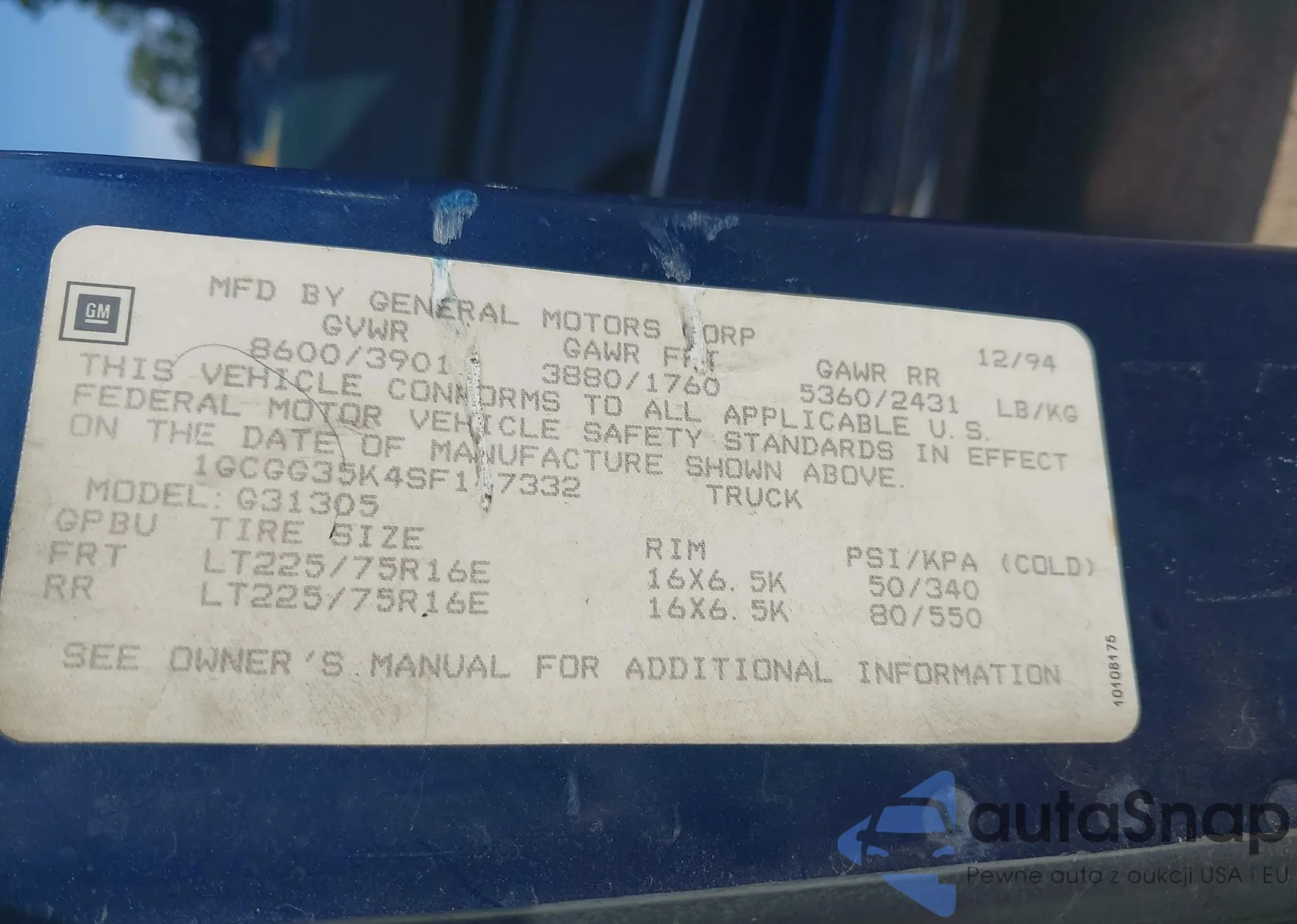 LOT: 42800807 VIN: 1GCGG35K4SF147332