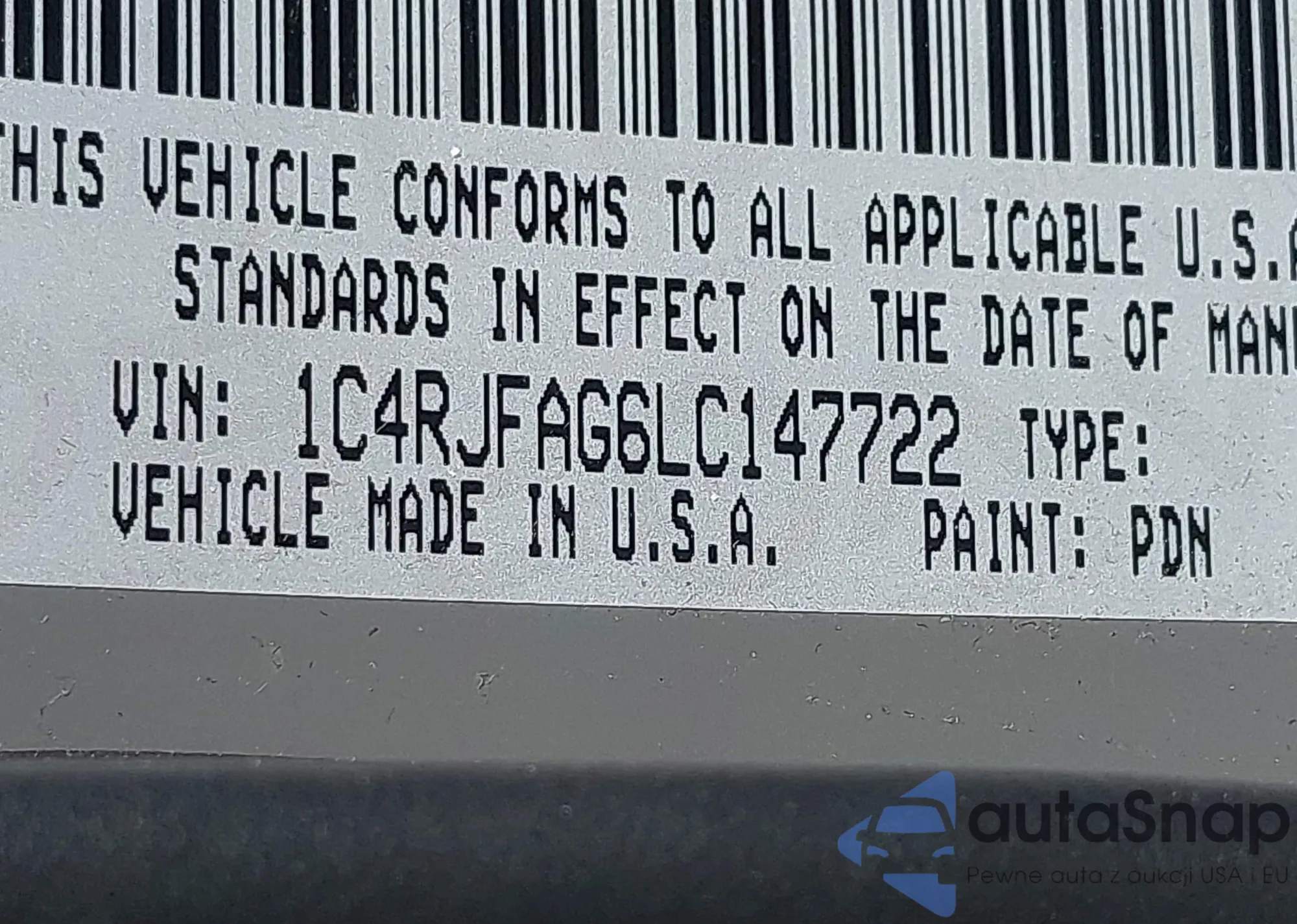 • VIN 1C4RJFAG6LC147722