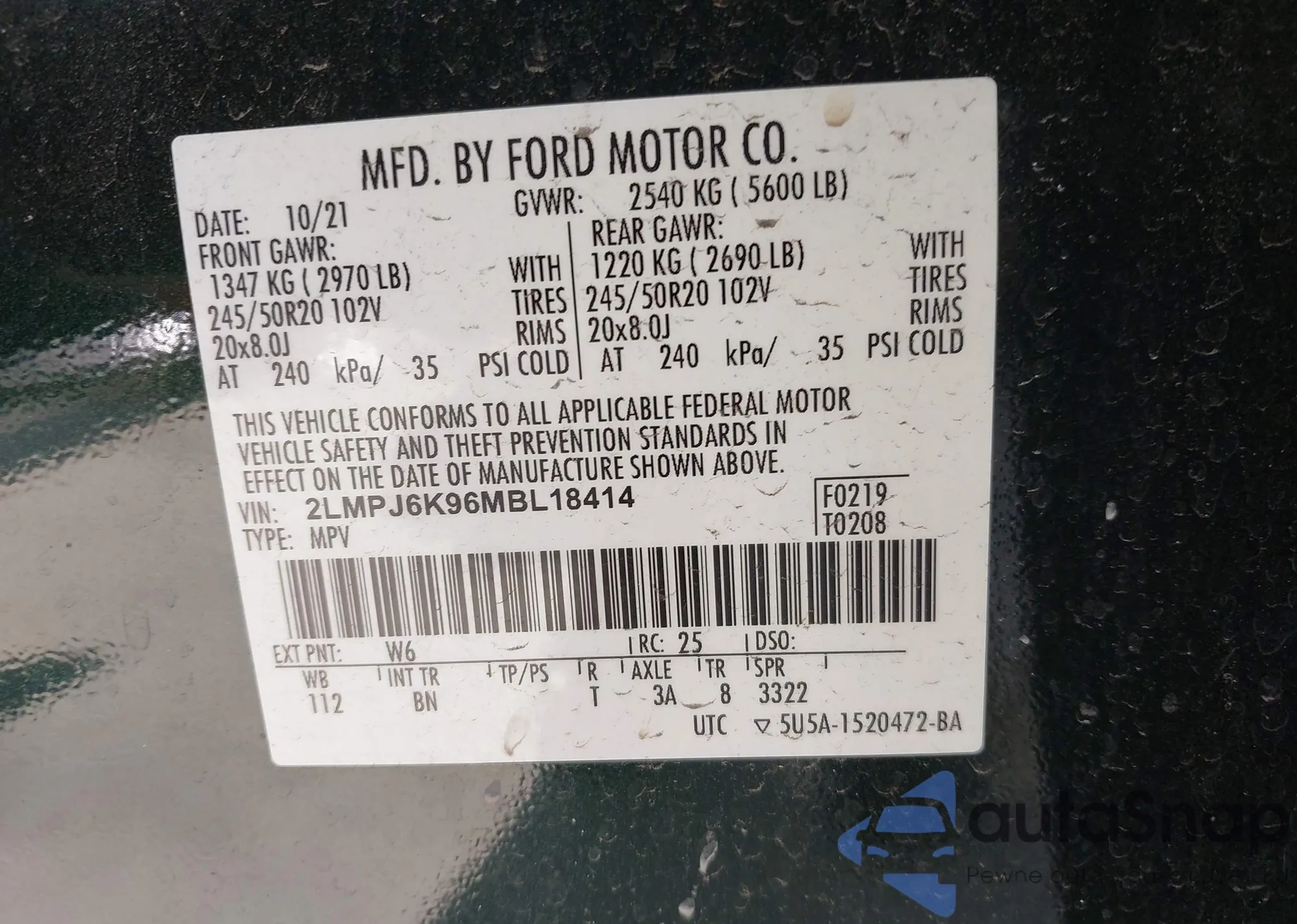 • VIN 1FMCU0JX8EUA04256