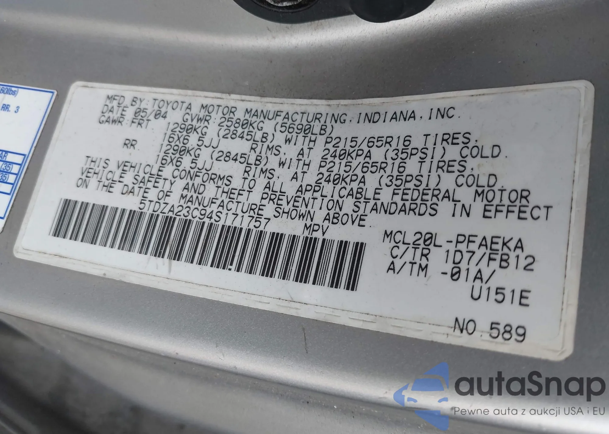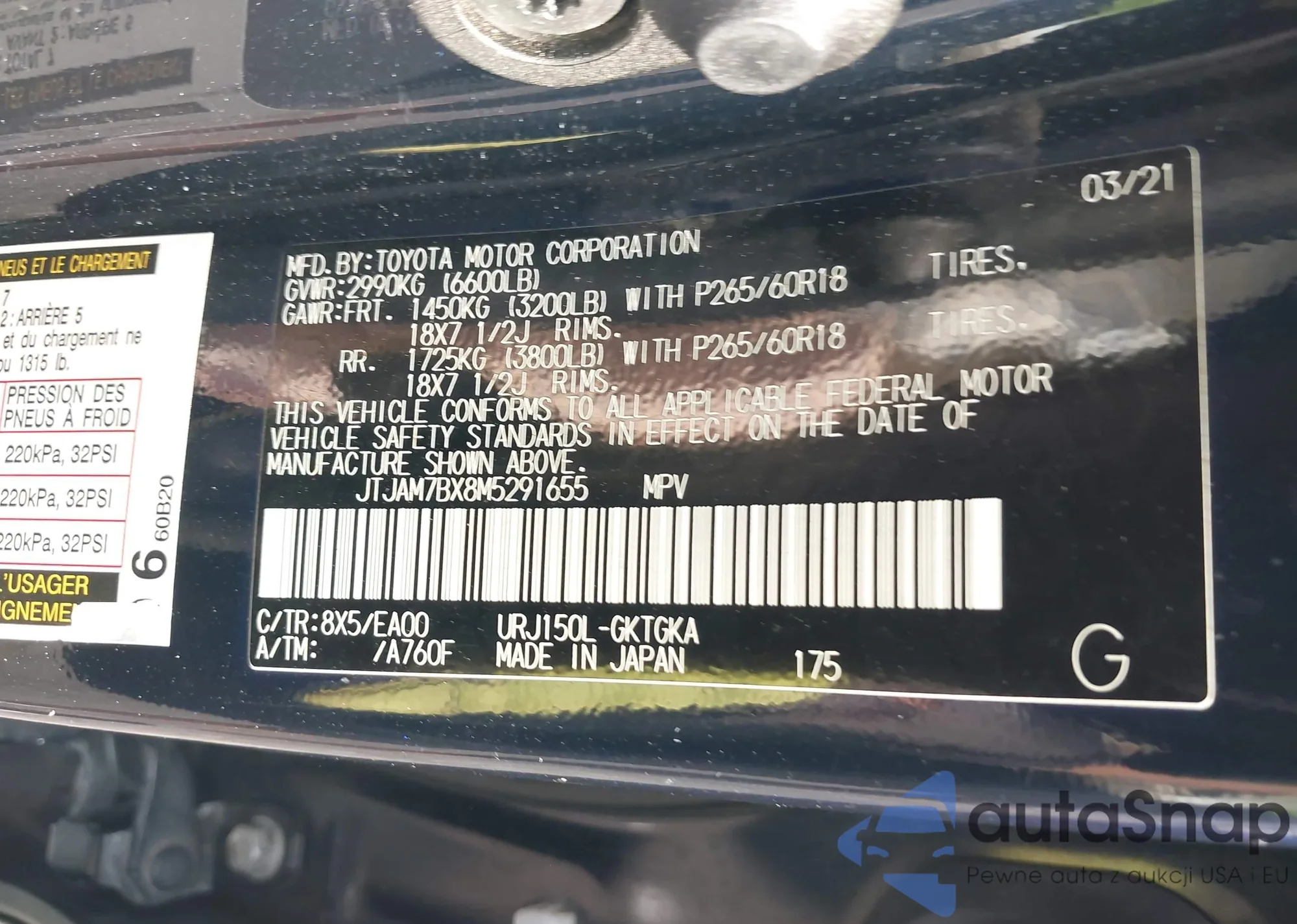 LOT: 42701330 VIN: JTJBM7FX2B5030906