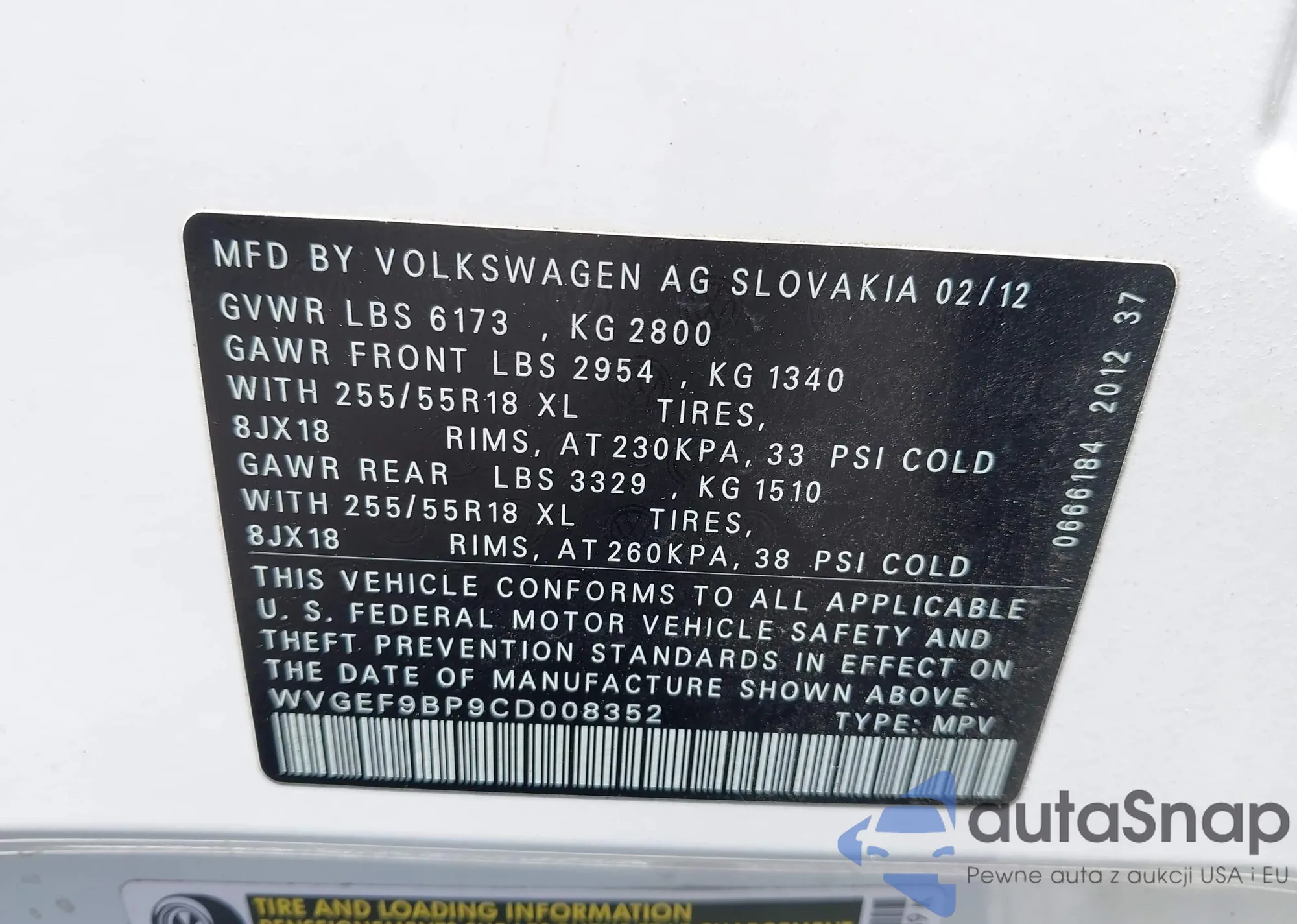 • VIN WVGEF9BP9CD008352