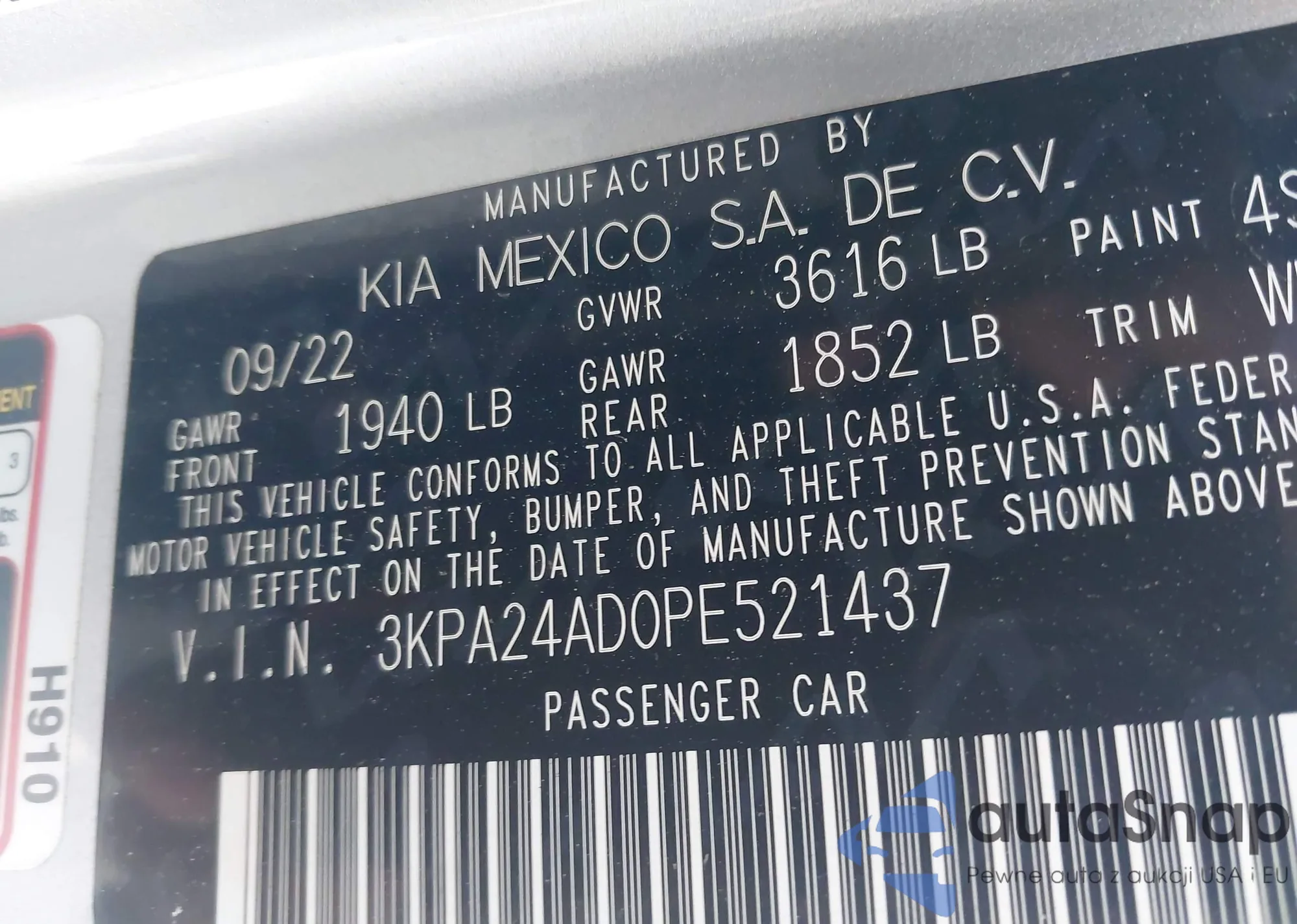 • VIN 3KPA24AD0PE521437