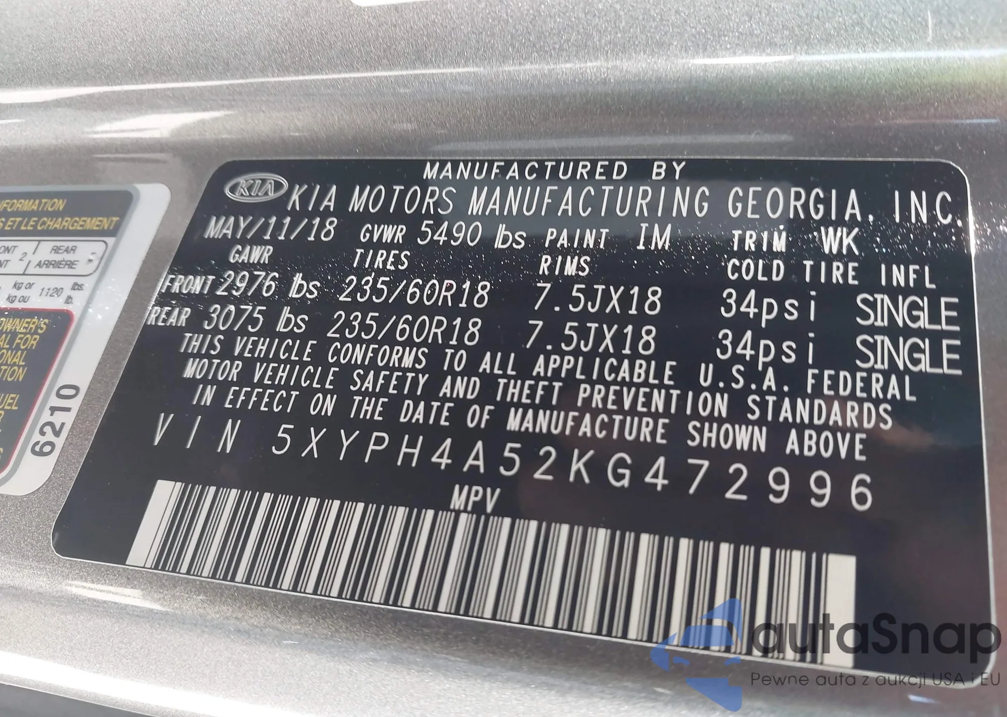 LOT: 42368762 VIN: KL7CJKSB5MB332060