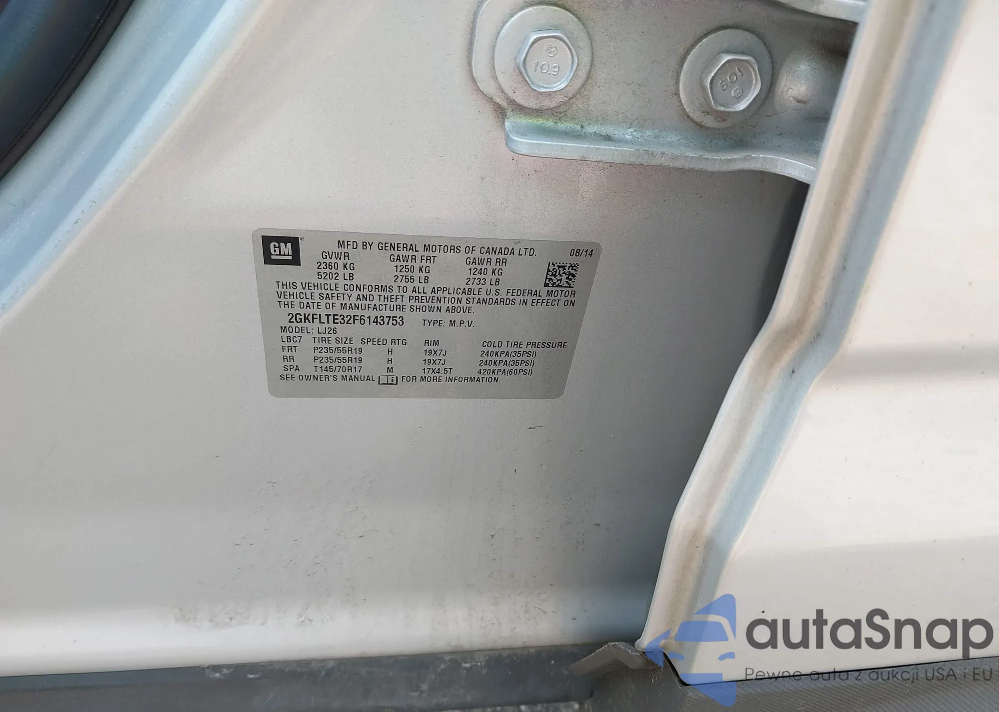 LOT: 42342155 VIN: 2GKFLTE32F6143753