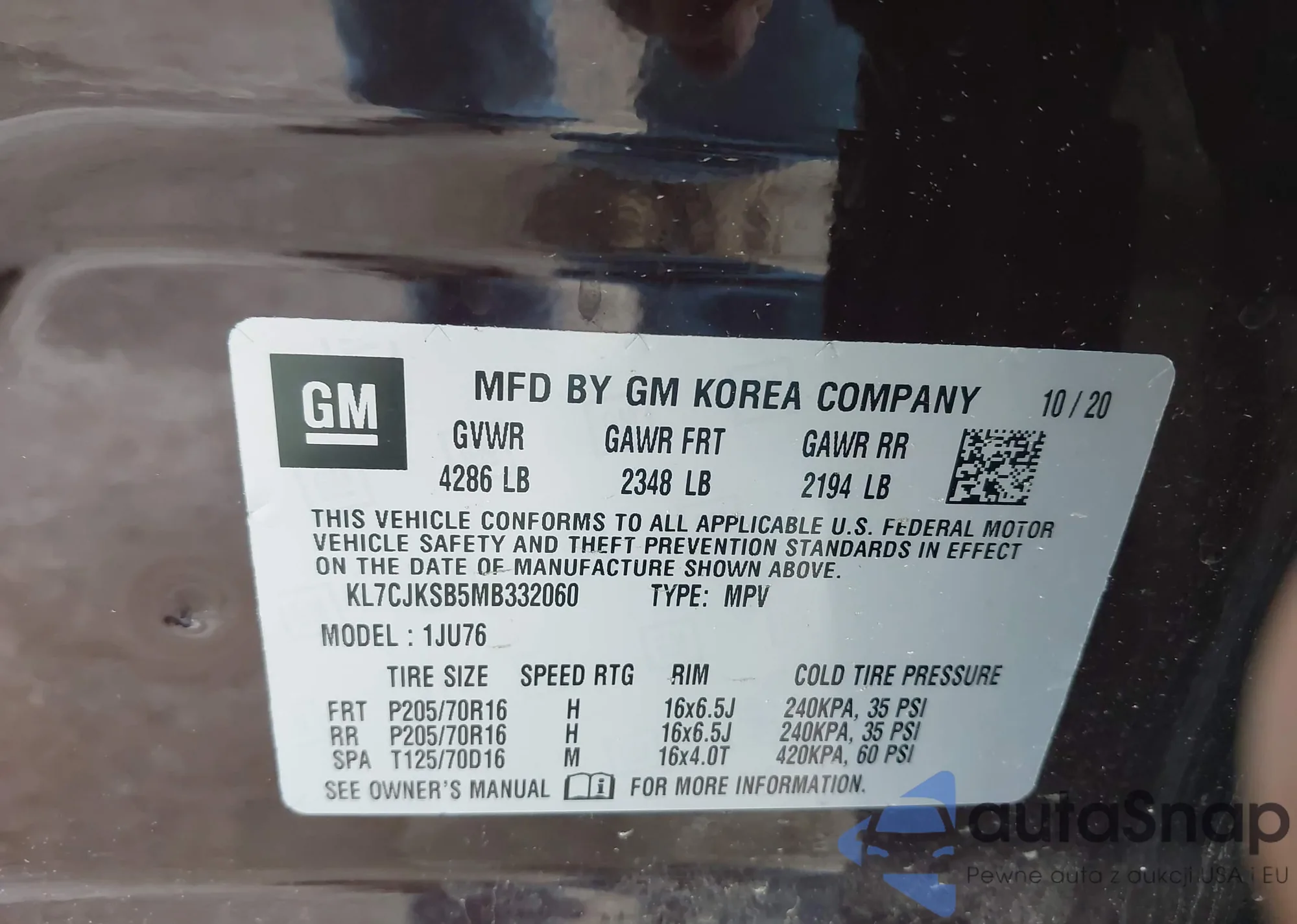 • VIN KL7CJKSB5MB332060