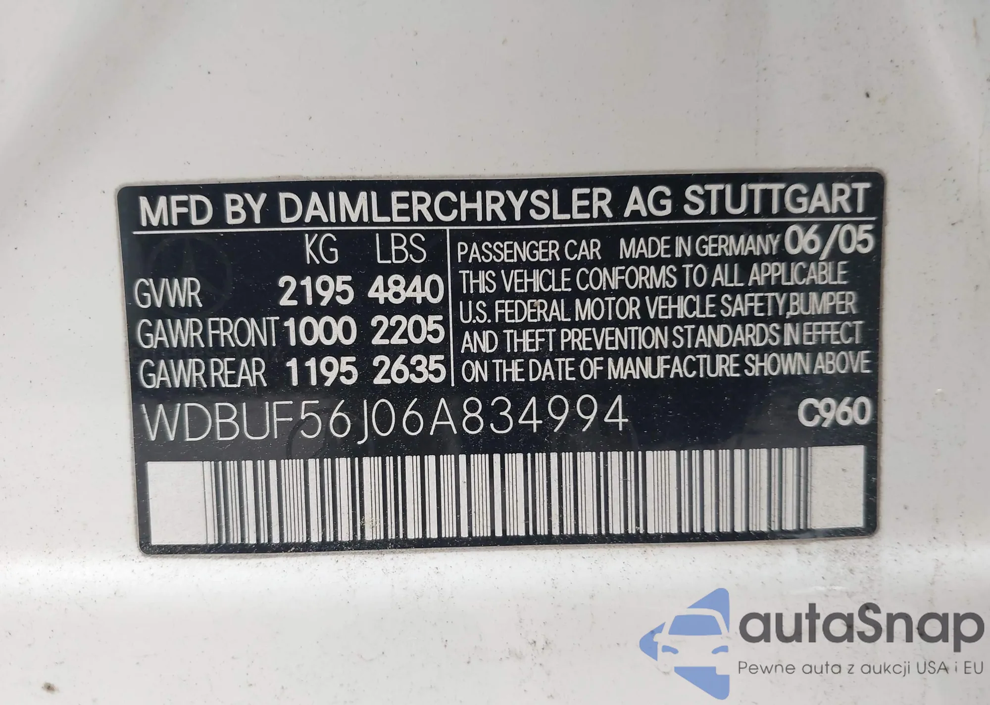 LOT: 42475214 VIN: WDBUF56J06A834994