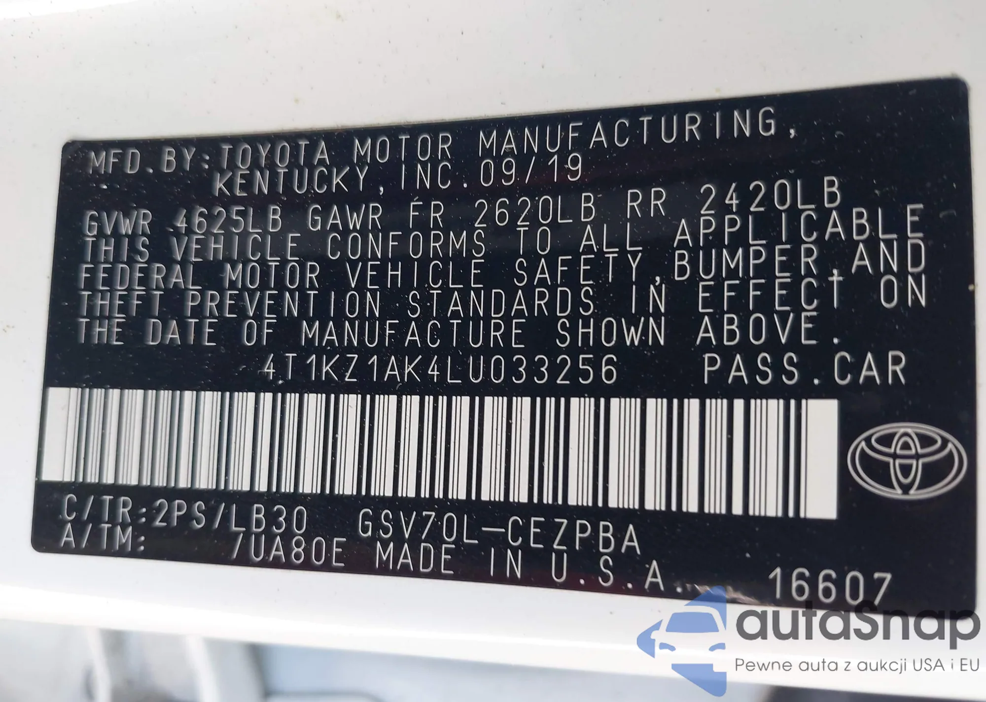• VIN 4T1KZ1AK4LU033256