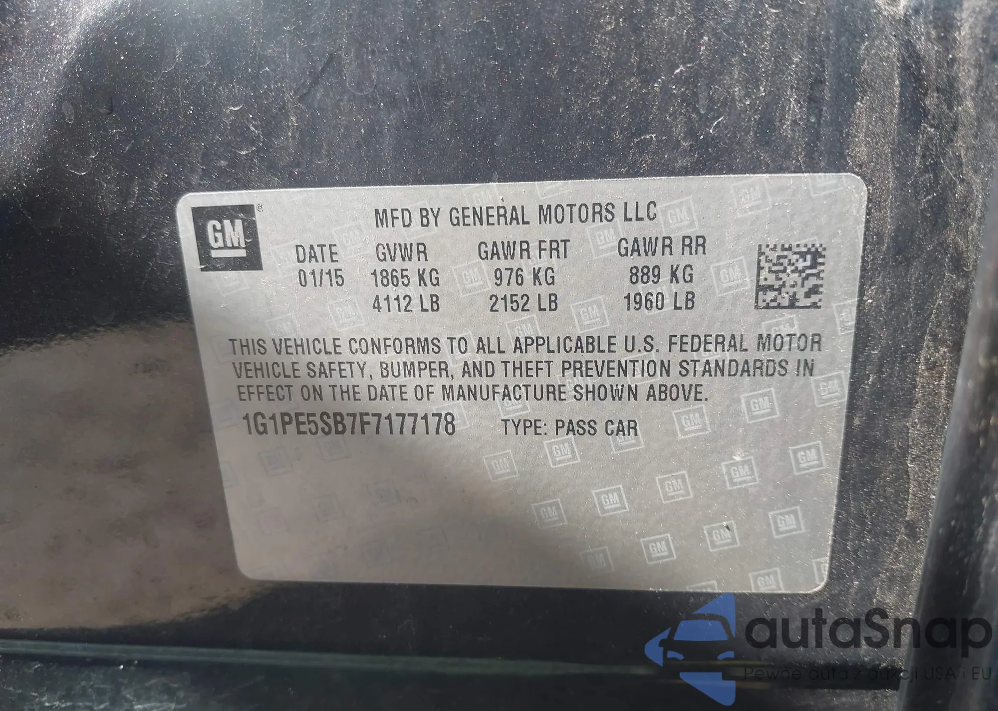 LOT: 42447699 VIN: 1G1PE5SB7F7177178