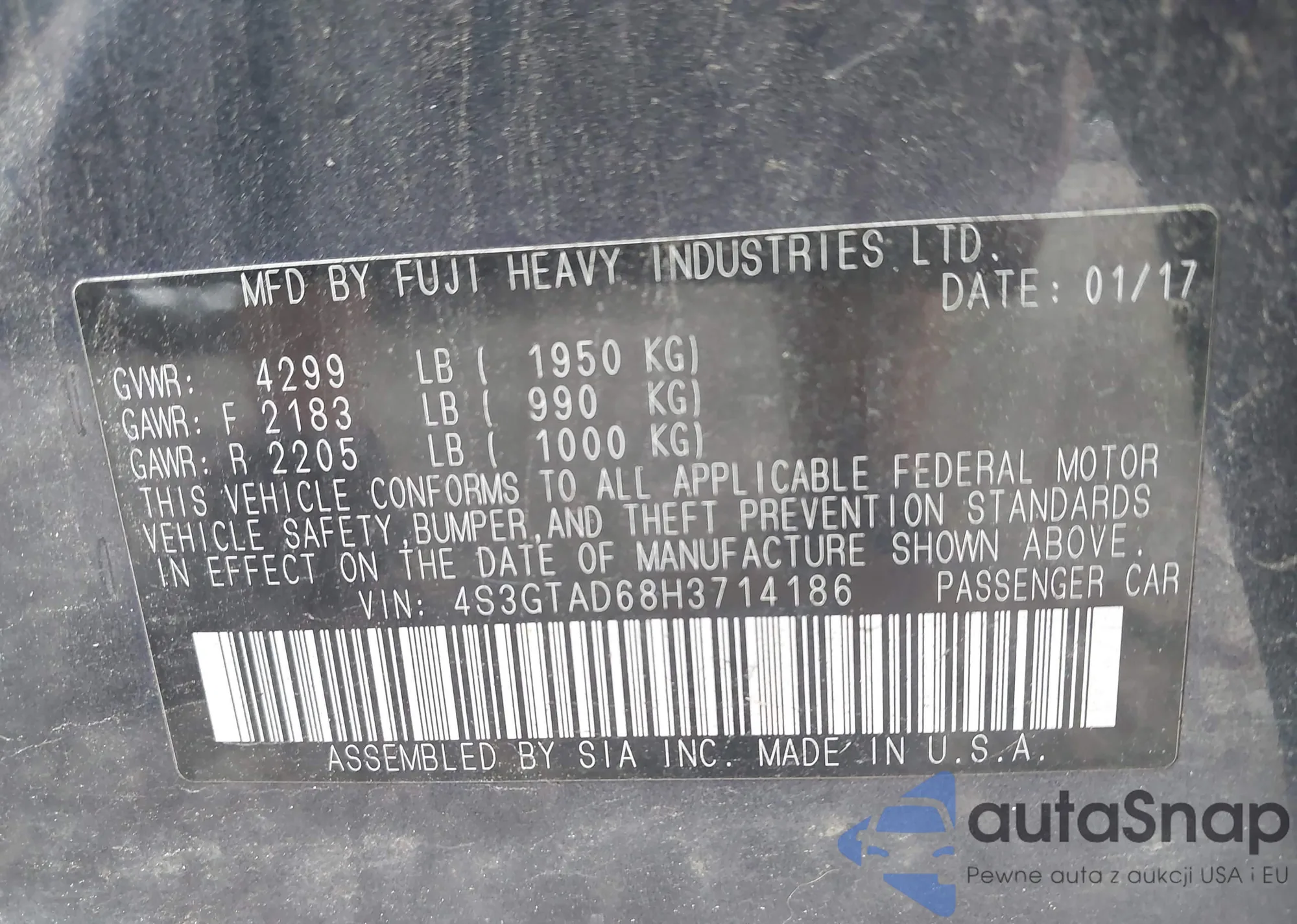 • VIN 4S3GTAD68H3714186