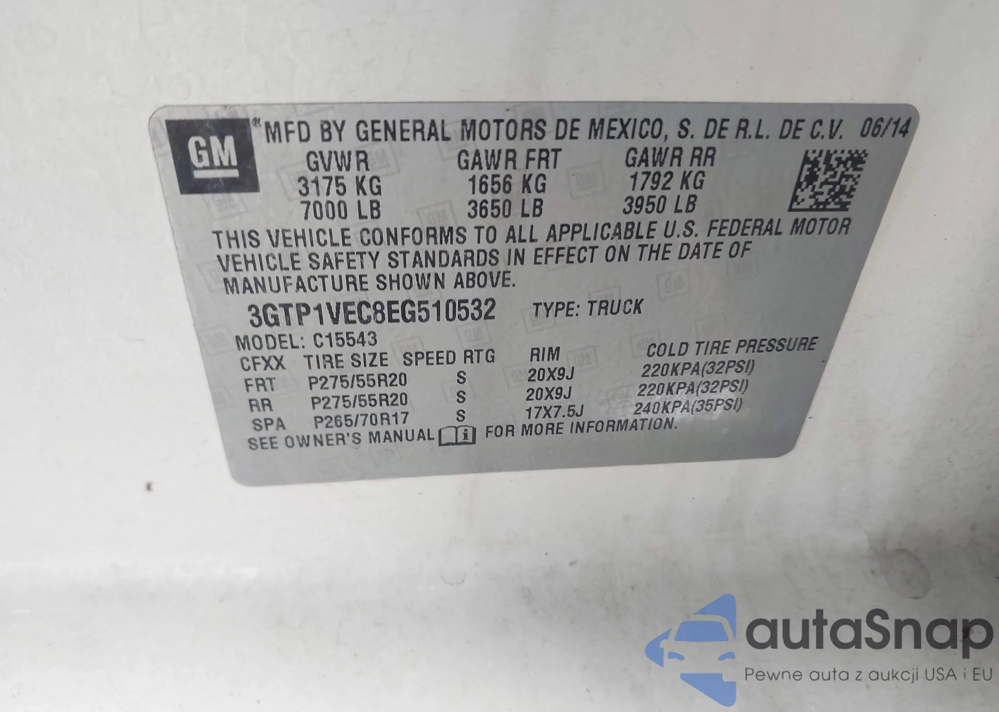 • VIN 3GTP1VEC8EG510532