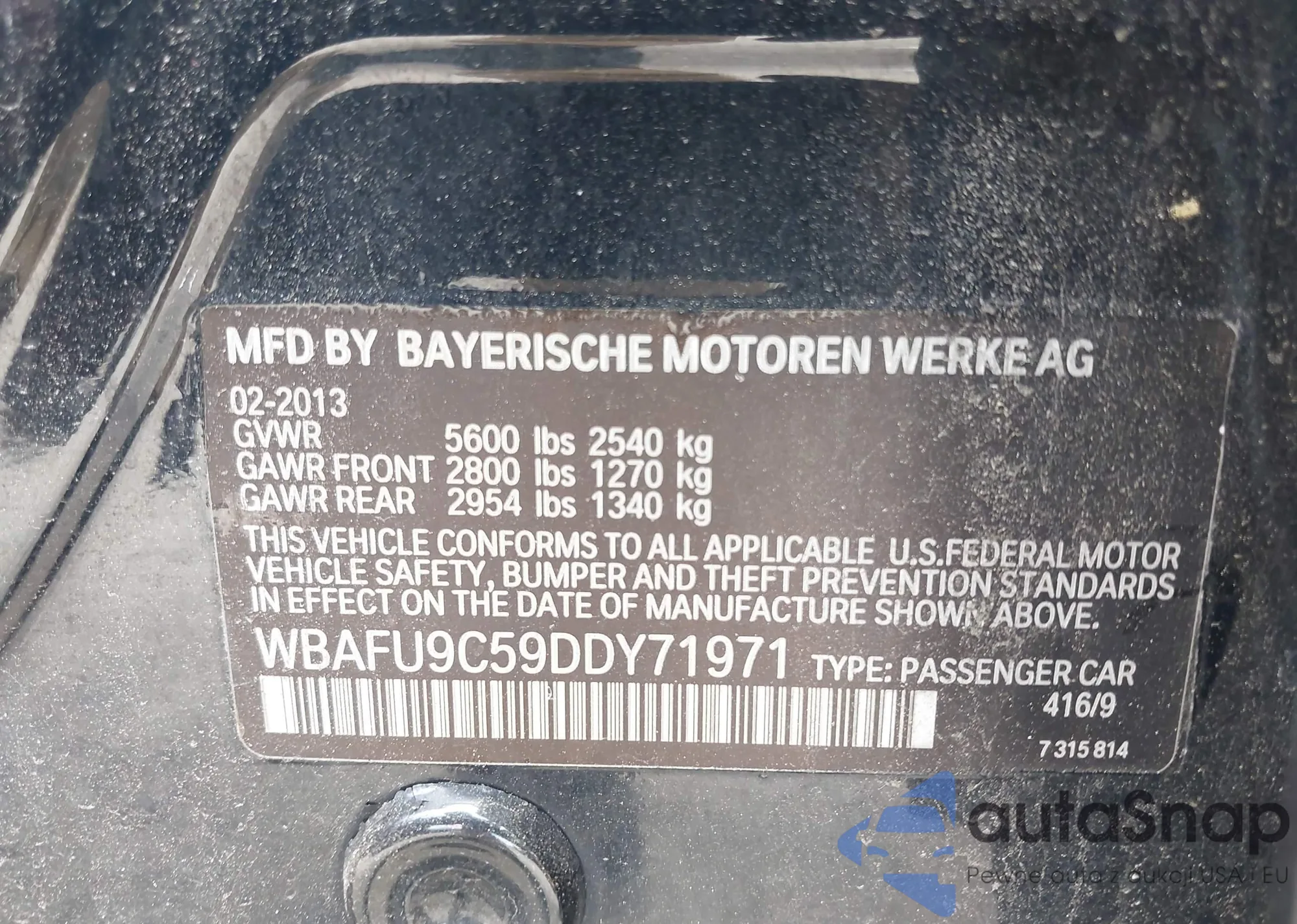 LOT: 42530235 VIN: WBAPK5G50BNN29913