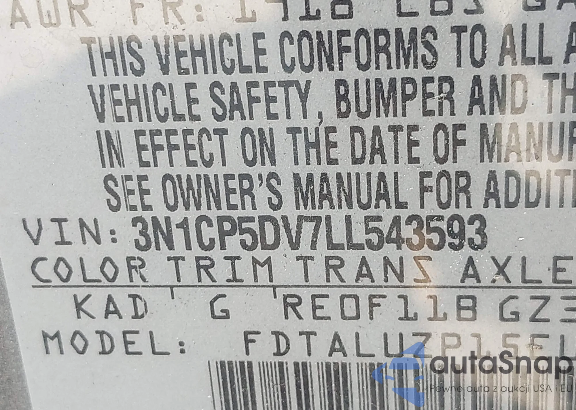 • VIN 3N1CP5DV7LL543593