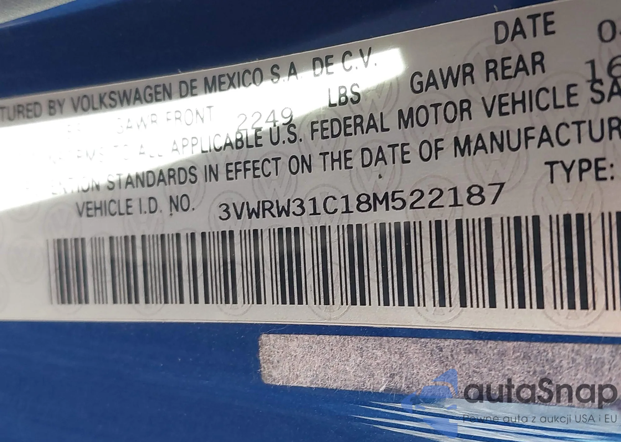 • VIN 3VWRW31C18M522187