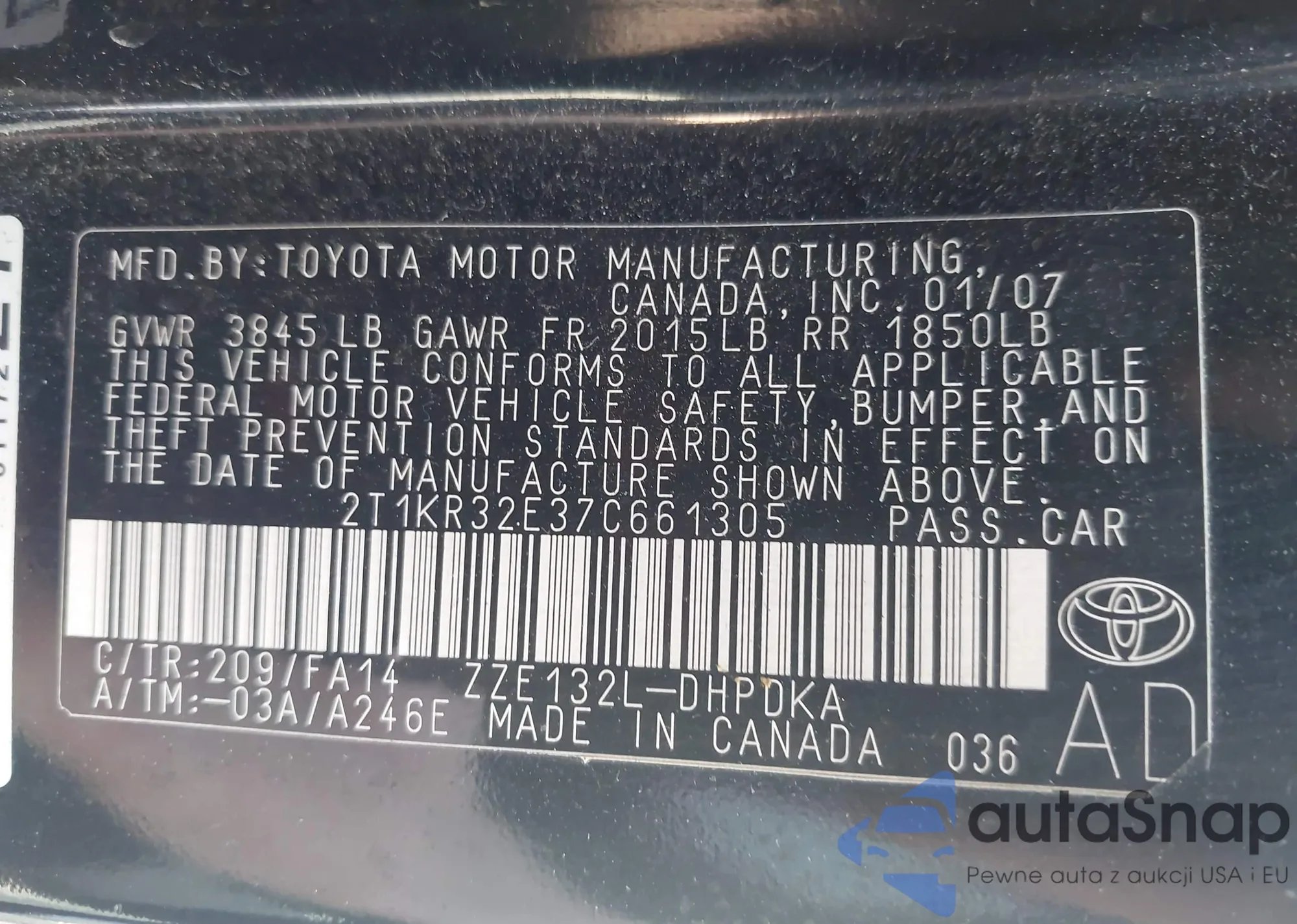 • VIN 4T1BE32K84U791253