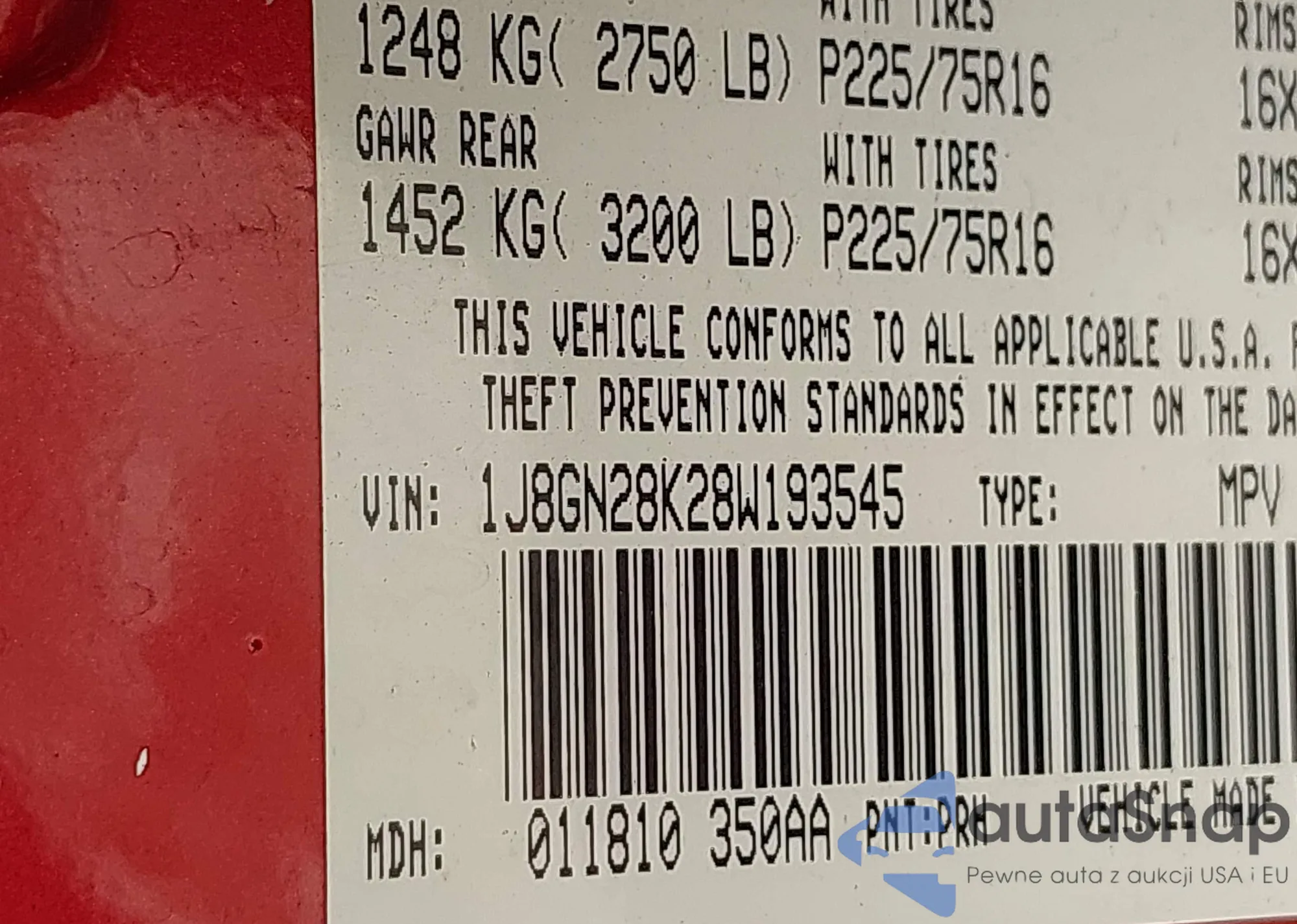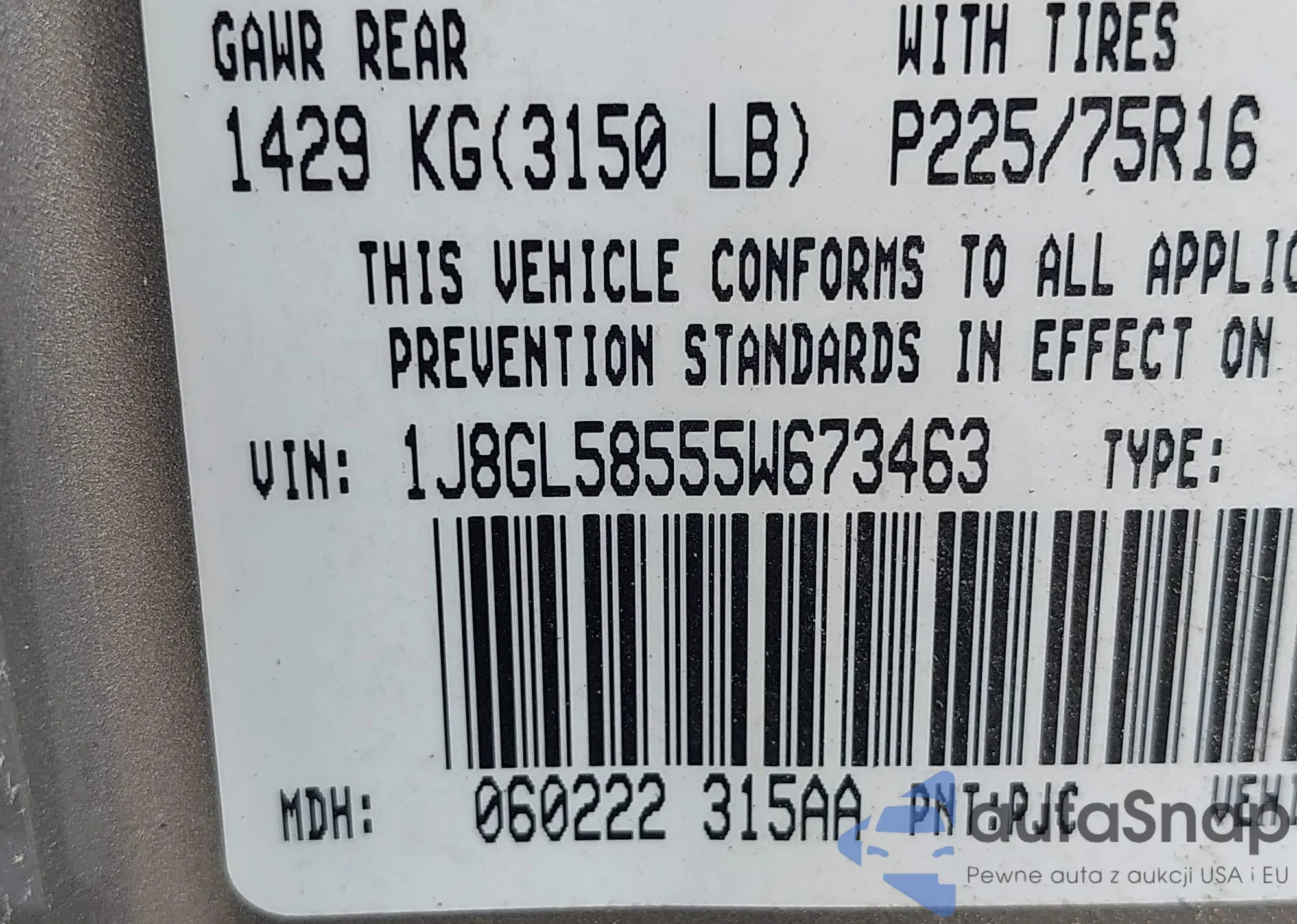 LOT: 42760487 VIN: JTMBD31V576050117