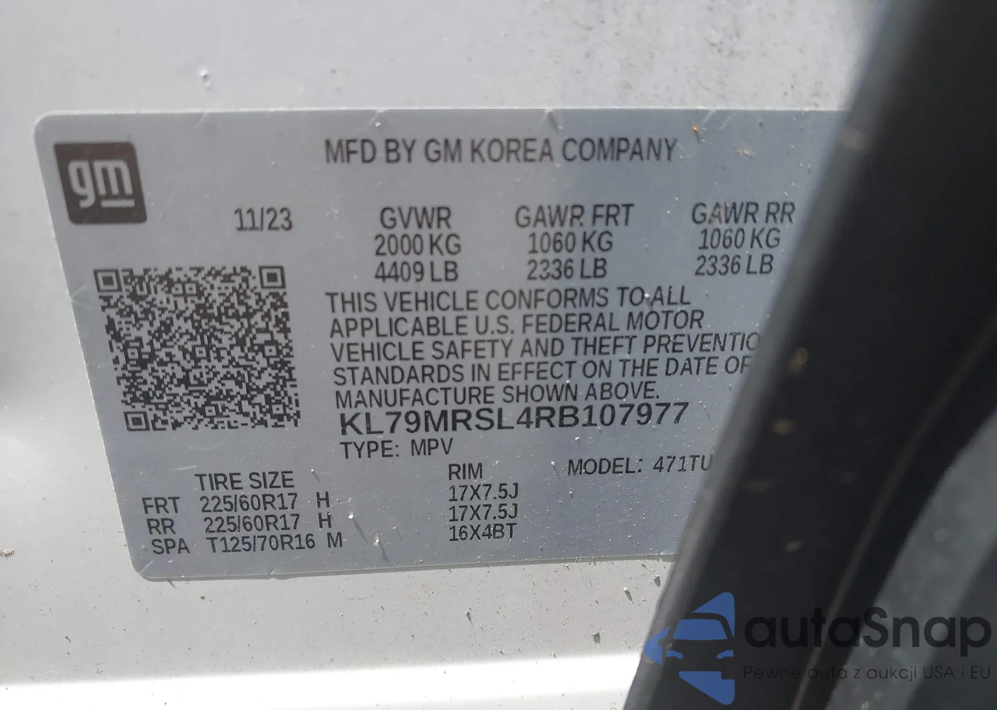 • VIN KL79MRSL4RB107977