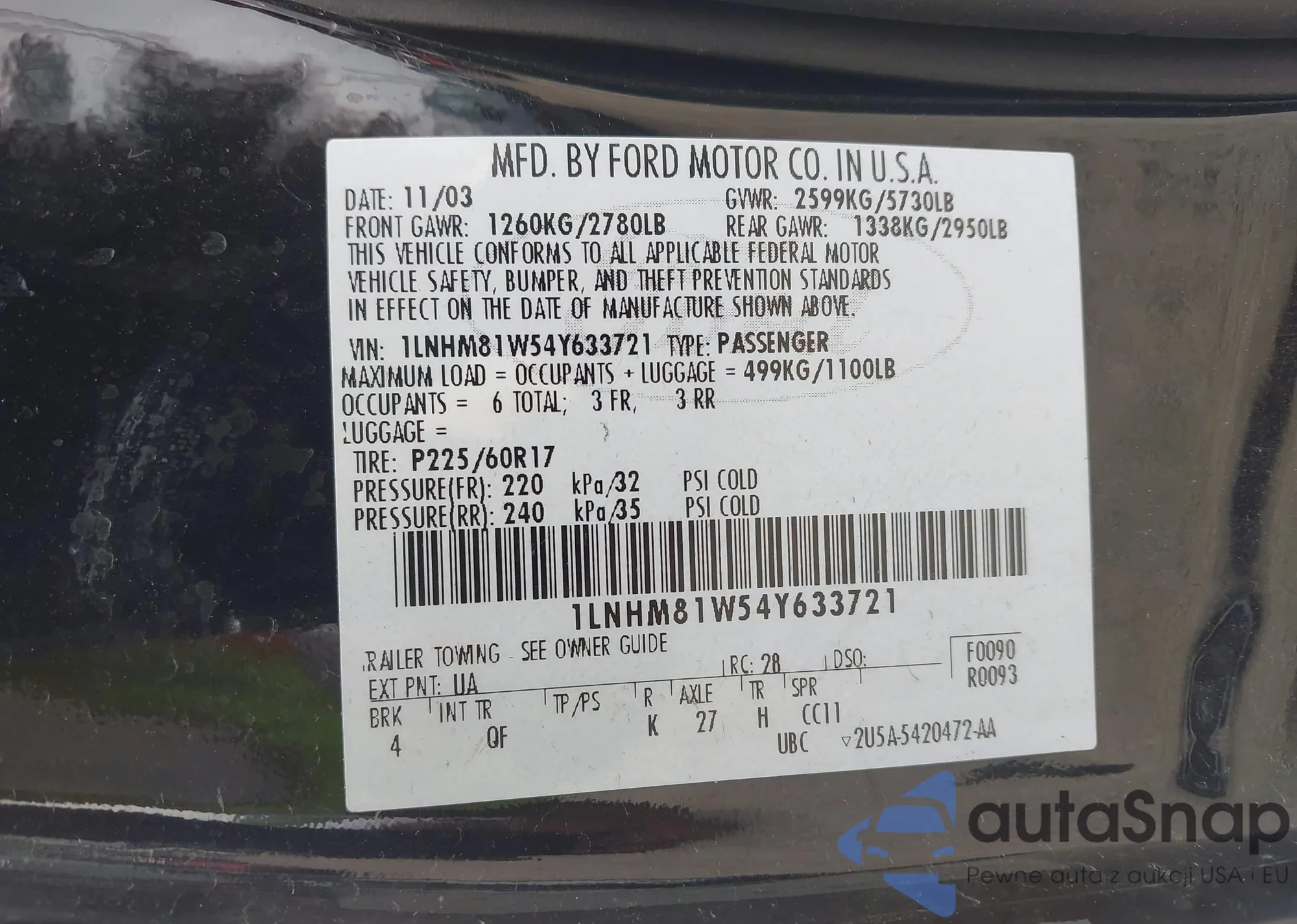 • VIN 1LNHM81W54Y633721