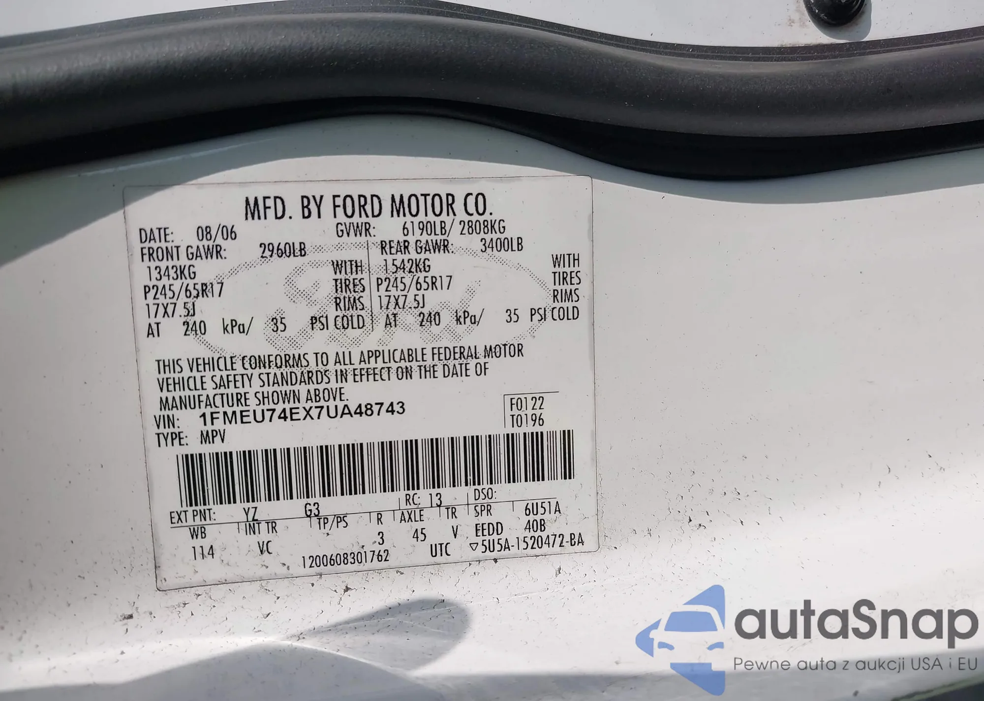 • VIN 1FMEU74EX7UA48743