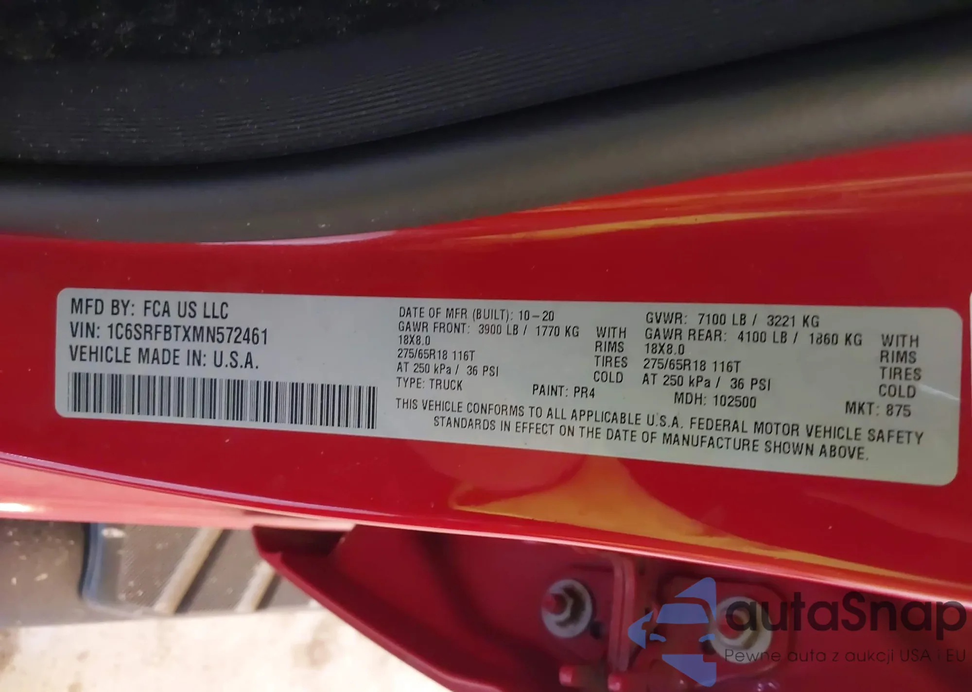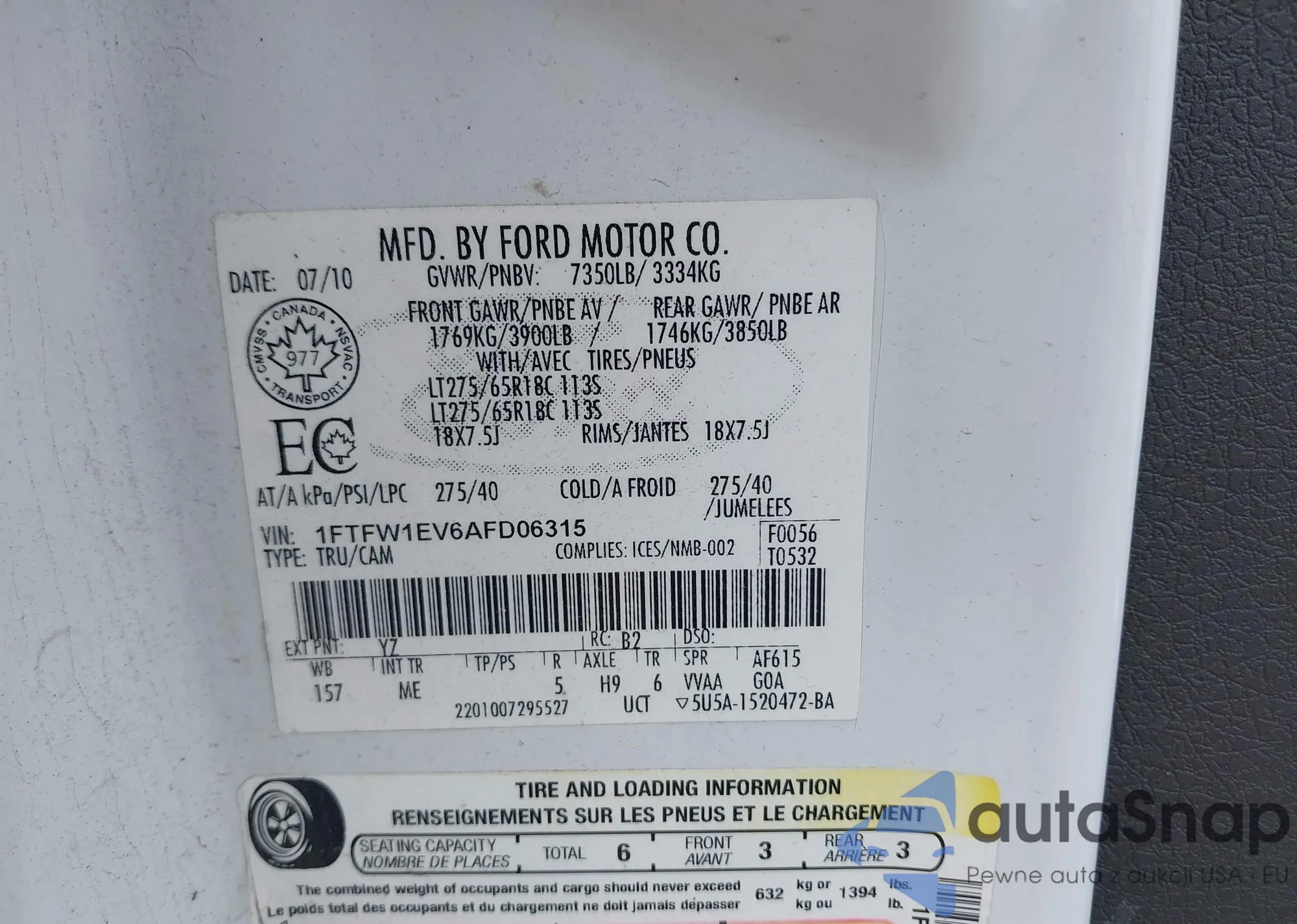 • VIN 1FTFW1EV6AFD06315