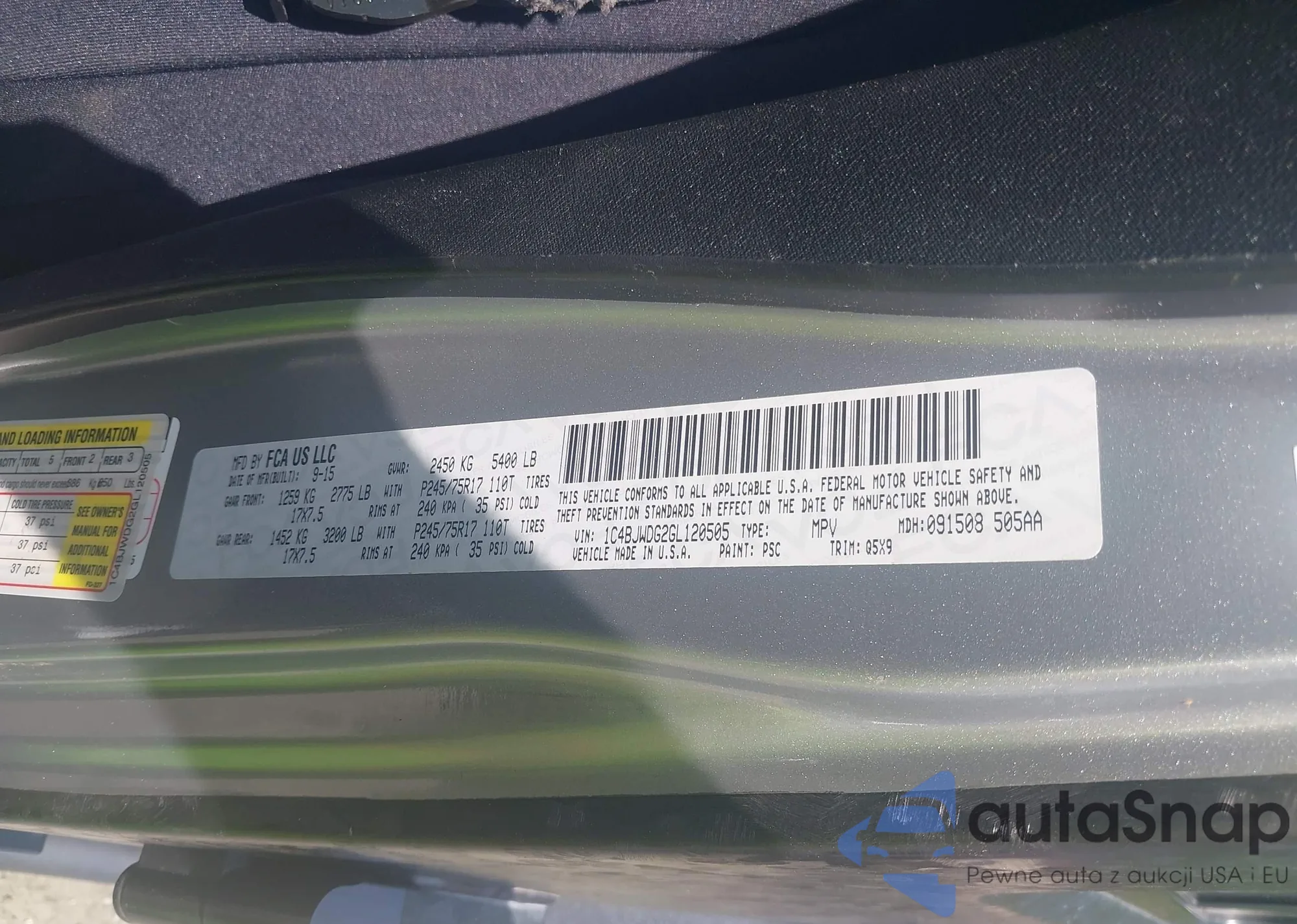 LOT: 42248431 VIN: 1C4BJWDG2GL120505